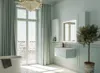 Sie können auch 2 Oberschränke übereinander stapeln, so dass eine Art Hochschrank entsteht, der in der Tiefe schmal ist. Achten Sie nur darauf, dass Sie die Griffe richtig positionieren, damit Sie diesen Wandschrank im Bad leicht öffnen und schließen können. Auf diese Weise können Sie bei den Badezimmerschränken besonders kreativ sein, ohne Kompromisse bei der Qualität oder dem Platz einzugehen.