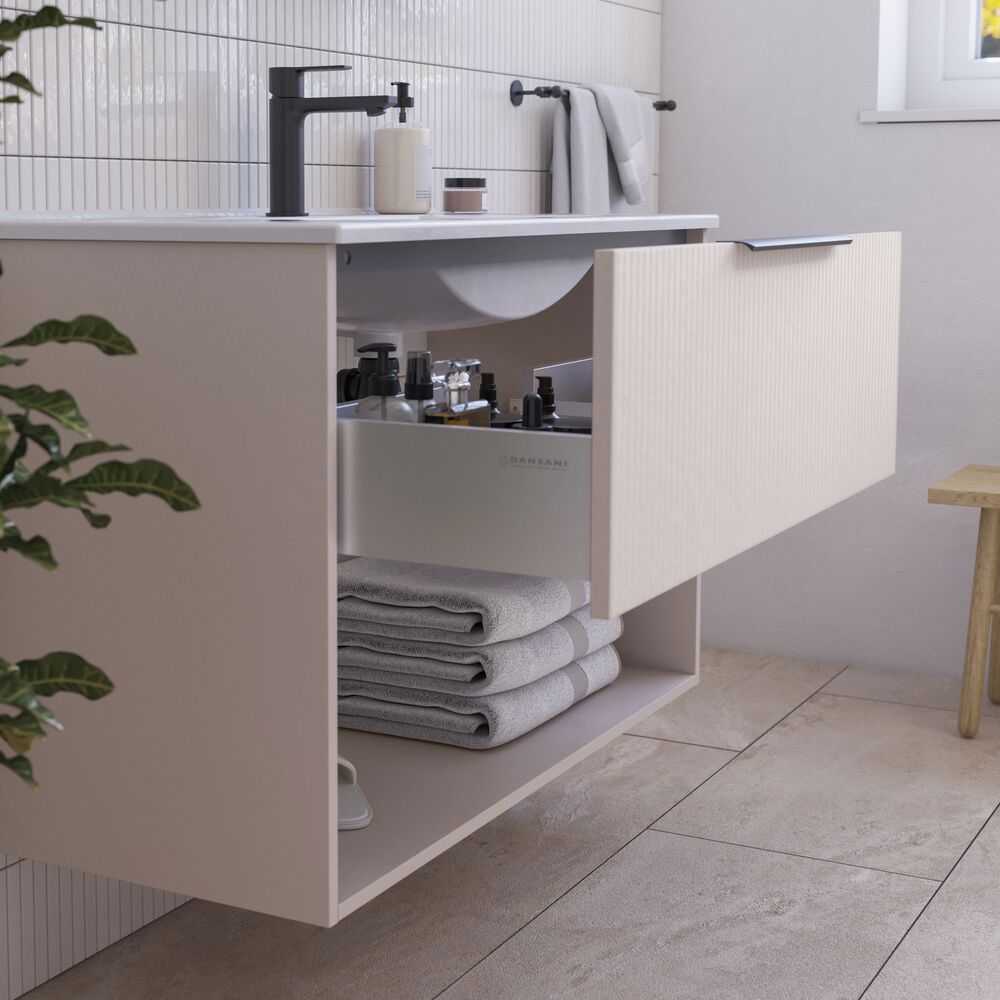 Ein Waschtischunterschrank mit Schubladen ist die ideale Lösung, wenn Sie Funktionalität und Stil in Ihrem Badezimmer kombinieren möchten. Die Schubladen bieten einfachen Zugang zur Aufbewahrung und tragen dazu bei, Ordnung zu halten, während sie alles Wesentliche gut verborgen halten. Bei Dansani finden Sie eine Vielzahl von Waschtischunterschränken mit Schubladen in unterschiedlichen Serien, die dänisches Design, hohe Qualität und lange Haltbarkeit miteinander verbinden. Egal, ob Sie einen kompakten 50 cm Waschtischunterschrank mit Schubladen oder eine größere Lösung suchen, bei uns finden Sie das passende Modell für Ihr Badezimmer.
