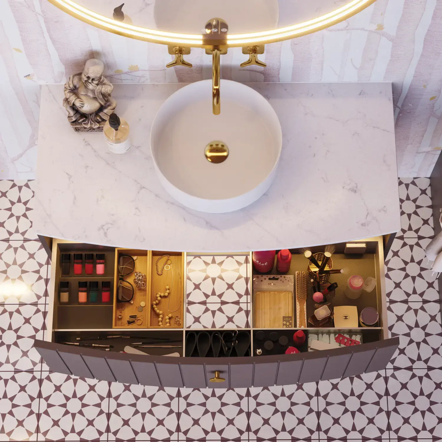 Systematische Aufbewahrung in den Schubladen mit praktischen Badaccessories