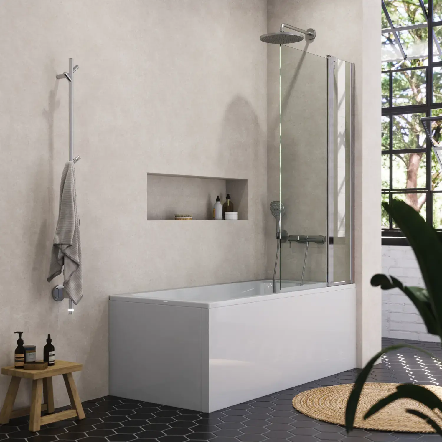 Der mobile Handtuchhalter ist ein praktisches und zugleich dekoratives Zubehör.