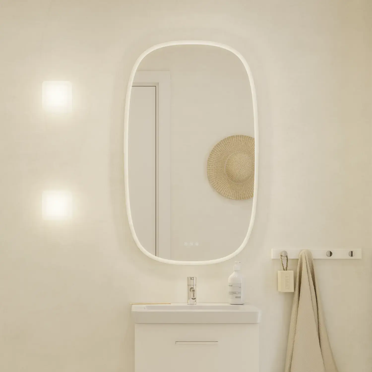 Ein ovaler Spiegel verleiht dem Badezimmer ein klassisches und elegantes Aussehen. Die runde Form ist weich und kann einen Hauch von Raffinesse und Zeitlosigkeit verleihen. Ovale Spiegel eignen sich gut für traditionelle Bäder oder Bäder im Vintage-Stil, können aber auch in moderneren Designs verwendet werden, um einen Kontrast zwischen den organischen Formen und klaren Linien zu schaffen.