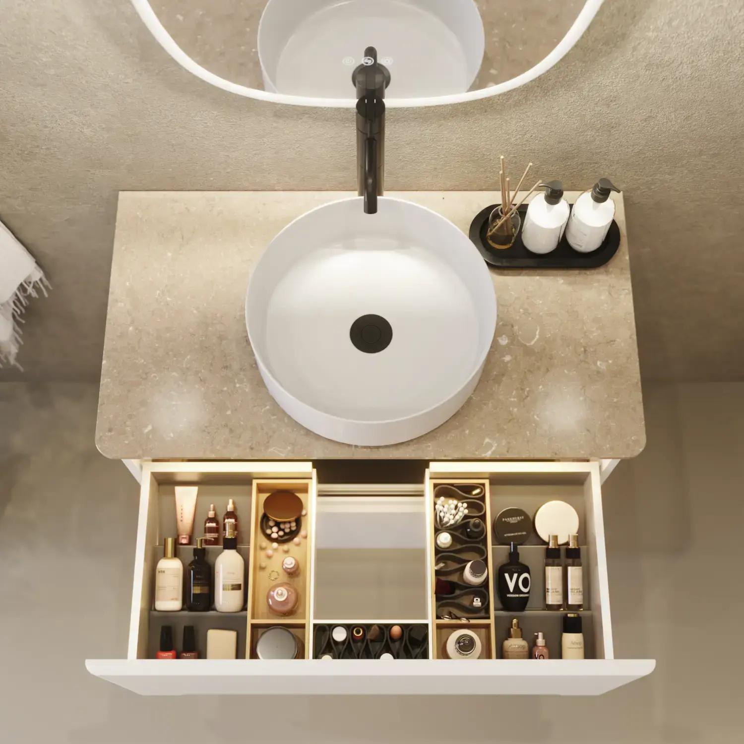 Runde Formen bleiben auch 2026 im Trend – und das aus gutem Grund. Weiche Linien lassen den Raum harmonischer wirken, egal ob kleines Gäste-WC oder großzügiges Familienbad. Denken Sie an abgerundete Fronten, ovale Spiegel, sanfte Ecken und Formen, die das Interieur natürlich fließen lassen. Ein Trend, der nicht nur schön aussieht, sondern sich auch gut anfühlt.