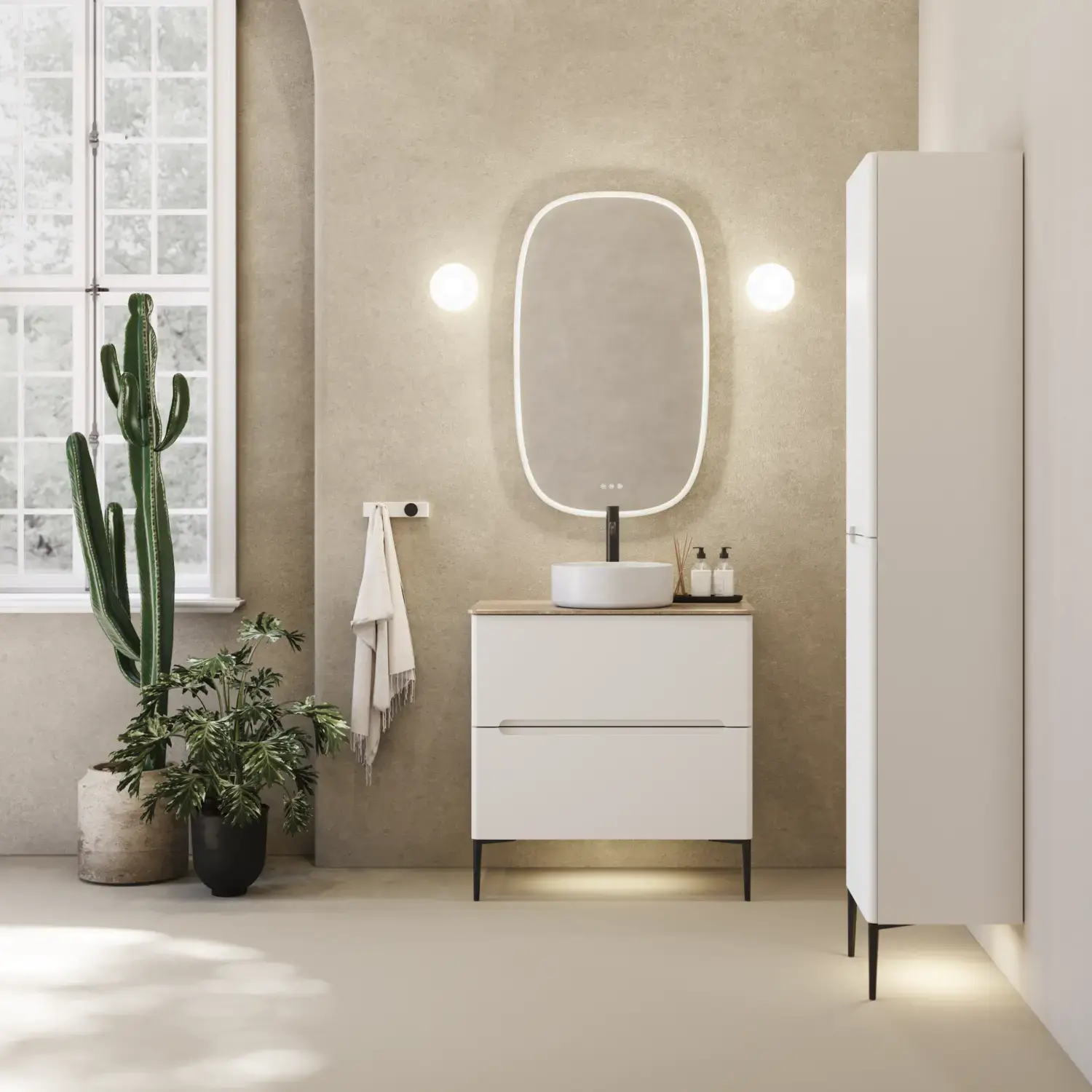 Diese Schränke schaffen mehr Bodenfläche und lassen den Raum luftiger wirken. In Serien wie Dansani Mido+ gibt es mehrere wandhängende Modelle, die sich perfekt für kleine Bäder eignen. Auch bei Dansani Luna gibt es sehr schöne Aufbewahrungsmöglichkeiten für unter den Waschtisch in Form von Unterschränken, die den Stauraum optimieren und dem Bad einen Hauch von Luxus verleihen.