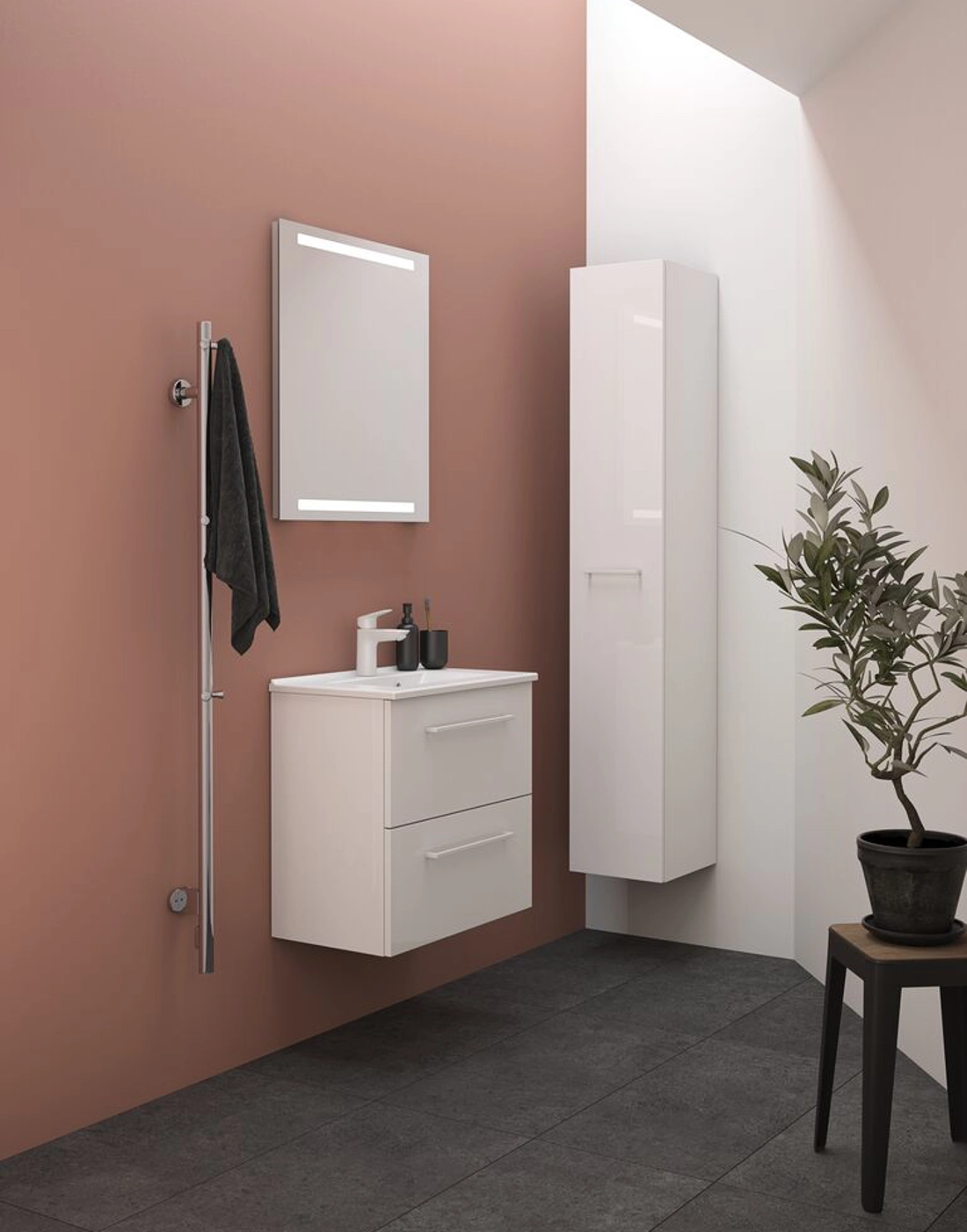 Der Waschtisch Amber Mini mit seiner eleganten, dünnen Tischplatte ist schön und ist trotz seiner Größe mit einem großen Becken ausgestattet. Er passt perfekt in kleinere Badezimmer, da er nur 35 cm tief ist. Der Waschtisch ist aus Sanitärporzellan gefertigt, einem robusten und langlebigen Material, das unglaublich pflegeleicht ist.