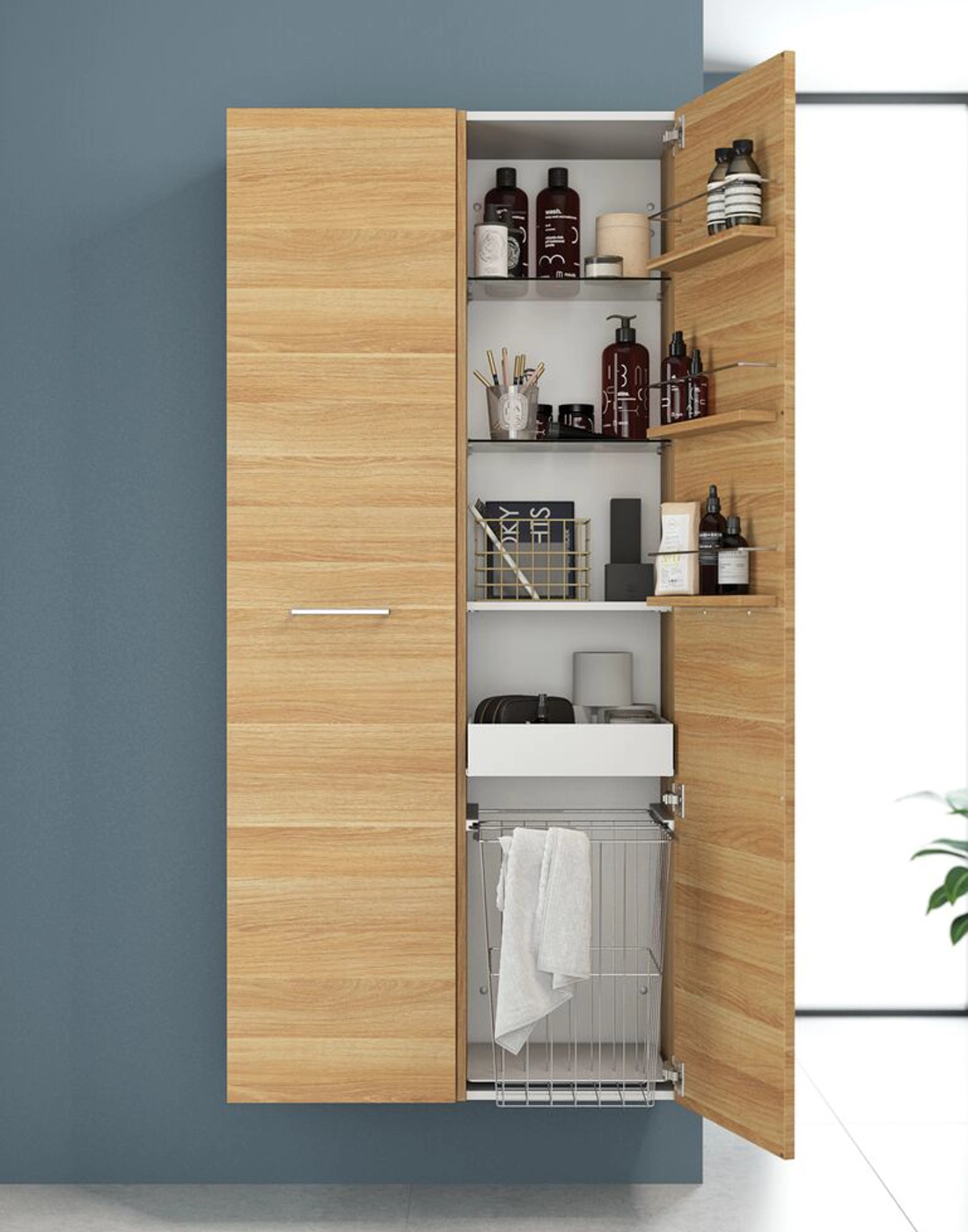 Mit dem Dansani Mido+ Hochschrank nutzen Sie jeden Zentimeter Platz in Ihrem Badezimmer. Mit einem Hochschrank können Sie all Ihre Badutensilien unterbringen. Wenn Sie also den Platz haben, empfehlen wir Ihnen unbedingt einen Hochschrank für Ihr Badezimmer. In diesem Hochschrank finden Sie 1 Holzeinlegeboden, 4 Glaseinlegeböden und 3 Einlegeböden in der Tür selbst. So haben Sie viel Platz und die Möglichkeit, Ihr Bad optimal zu gestalten. Erleben Sie mit dem Dansani Mido+ Hochschrank eine neue Dimension von Ordnung und Design in Ihrem Bad.