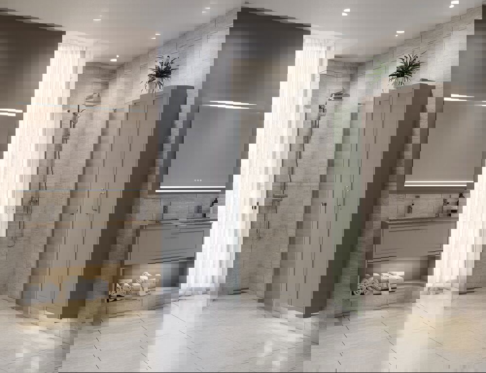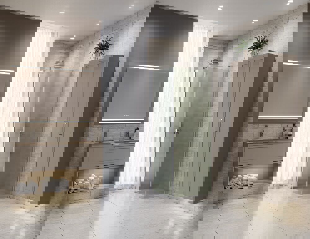 Schaffen Sie einen zeitlosen Ausdruck in Ihrem Badezimmer mit einem Hochschrank mit klassischer Rahmenfront. Dieser Schrank misst 176 cm in der Höhe und 35 cm in der Tiefe und bietet Ihnen die perfekte Aufbewahrungslösung für Handtücher, Toilettenartikel und andere Notwendigkeiten. Er ist mit einem Holzregal und fünf Glasregalen ausgestattet, sodass Sie Ihre Gegenstände so organisieren können, dass sie immer leicht zugänglich sind. Die klassische Rahmenfront fügt Eleganz hinzu und passt perfekt in sowohl traditionelle als auch moderne Badezimmer. OBS: Für Produkte mit wahlfreie Farbe fällt eine Aufpreis (BI1) an. Einmalige Berechnung, unabhängig von der Anzahl der Elemente. Überlegen Sie Ihre Badmöbel mit praktischem Zubehör auszustatten, an denen Sie täglich Freude haben werden. Wie z.B. LED-Beleuchtung in den Schubladen, Innenbeleuchtung in den Schränken, eine eingebaute Steckdose und LED-Beleuchtung unter dem Schrank inkl. Bewegungssensor und Lichtsteuerung die Ihren nächtlichen Besuch im Bad führt. Das Zubehör wählen Sie direkt mit Ihren Möbeln aus.