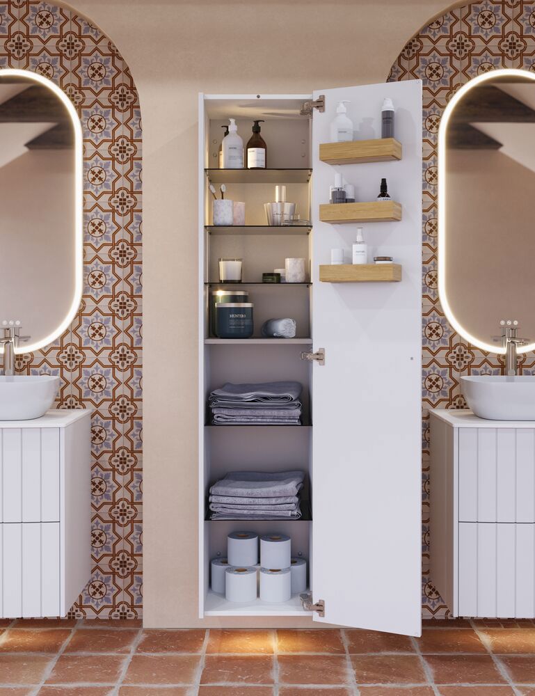 Der ovale Hoop-Spiegel verleiht mit seinem einzigartigen, schwebenden Rahmen einen stilvollen und modernen Ausdruck. Der geschwungene Innenrahmen leitet das Licht gleichmäßig nach vorne und erzeugt ein weiches, diffuses Licht, das angenehme Beleuchtung bietet, ohne zu blenden. Der Spiegel ist mit einer Lichtsteuerung ausgestattet, sodass Sie die Helligkeit je nach Bedarf anpassen können, sei es für Make-up oder eine entspannende Atmosphäre. Der Hoop-Spiegel wird standardmäßig mit einem schwarzen Rahmen geliefert, ist aber auch in einer speziell lackierten Farbe erhältlich, die zu Ihrem Badezimmer passt.   Sie können ein vormontiertes Wärmefeld für den Spiegel kaufen, um zu verhindern, dass der Spiegel beim Duschen beschlägt. OBS: Für Produkte mit wahlfreie Farbe fällt eine Aufpreis (BI1) an. Einmalige Berechnung, unabhängig von der Anzahl der Elemente.