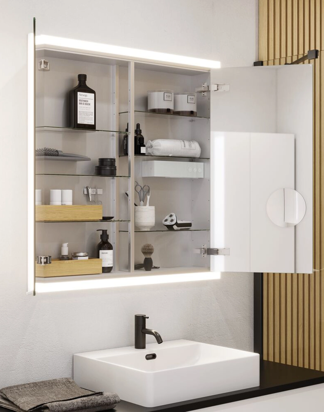 Mit dem In-Built Spiegelschrank von Dansani können Sie Ihr Badezimmer aufwerten. Er ist eingebaut, praktisch und sieht wirklich gut und elegant aus. Mit dem In-Built Spiegelschrank erhalten Sie Stil und Funktion in einem - er ist die ideale Wahl für Ihr Badezimmer. NB: Für den Einbauspiegelschrank müssen Sie einen schönen Lichtrahmen kaufen, der den Spiegel rundherum beleuchtet und natürlich mit der eingebauten Lichtsteuerung gesteuert werden kann, siehe mehr unter Zubehör für Spiegelschränke.