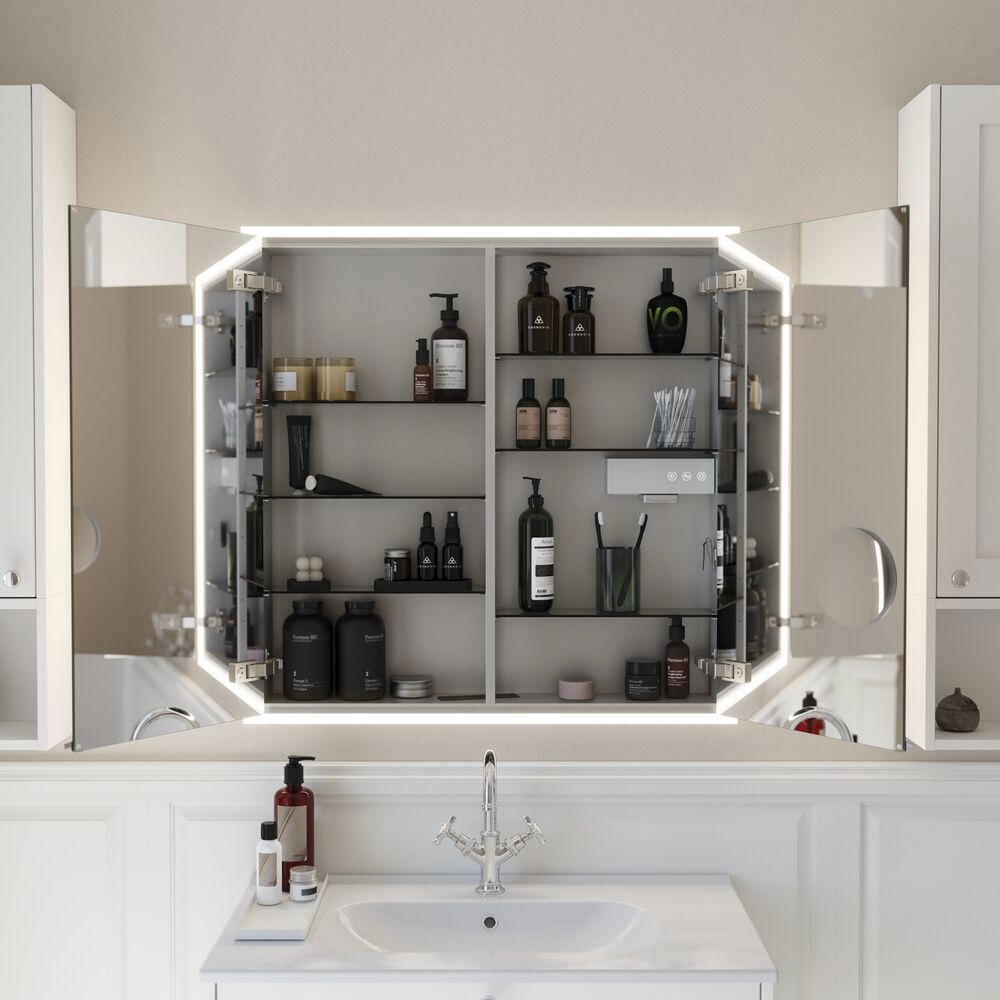 Mit dem InBuilt-Spiegelschrank von Dansani werten Sie Ihr Badezimmer elegant auf. Er ist eingebaut, praktisch und wirklich schön. Sie können ihn ganz einfach benutzen, um sich jeden Tag fertig zu machen und er passt perfekt in Ihr Badezimmer. Der Einbauspiegelschrank vereint Stil und Funktion in einem - er ist die ideale Wahl für Ihr Badezimmer. Der InBuilt-Spiegelschrank wird mit einem schönen Lichtrahmen geliefert, der rund um den Spiegel leuchtet und natürlich mit der eingebauten Lichtsteuerung gesteuert werden kann.