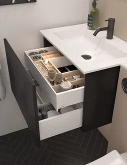 Optimieren Sie Ihre Aufbewahrung mit der Dansani Calidris Innenschublade, die perfekt in Ihren Waschtischunterschrank passt. Diese clevere Ergänzung bietet Ihnen zusätzlichen Platz, um Ihre Badutensilien zu organisieren, ohne Platz im Rest Ihres Waschtischs oder auf den Regalen Ihrer Schränke zu beanspruchen. Die Innenschublade ist nicht sehr hoch, aber sie kann viele kleine Gegenstände aufnehmen und sorgt so für mehr Übersicht und Ordnung im Bad.