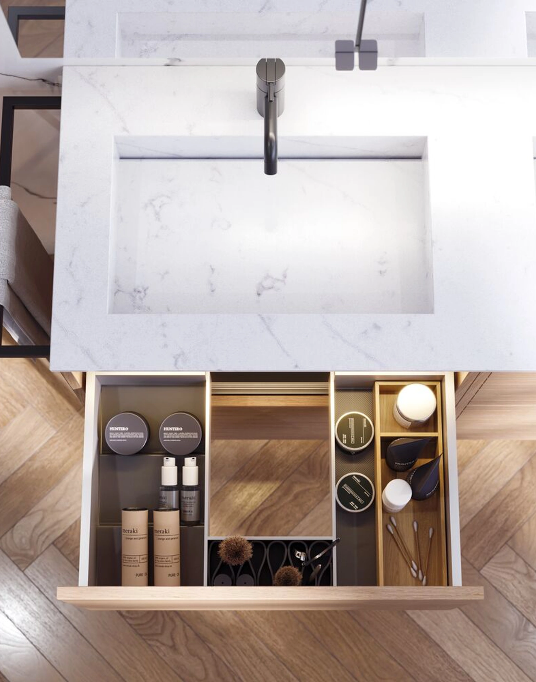 LED Beleuchtung in 2 Schubladen + Steckdose in der unteren Schublade (60 cm)