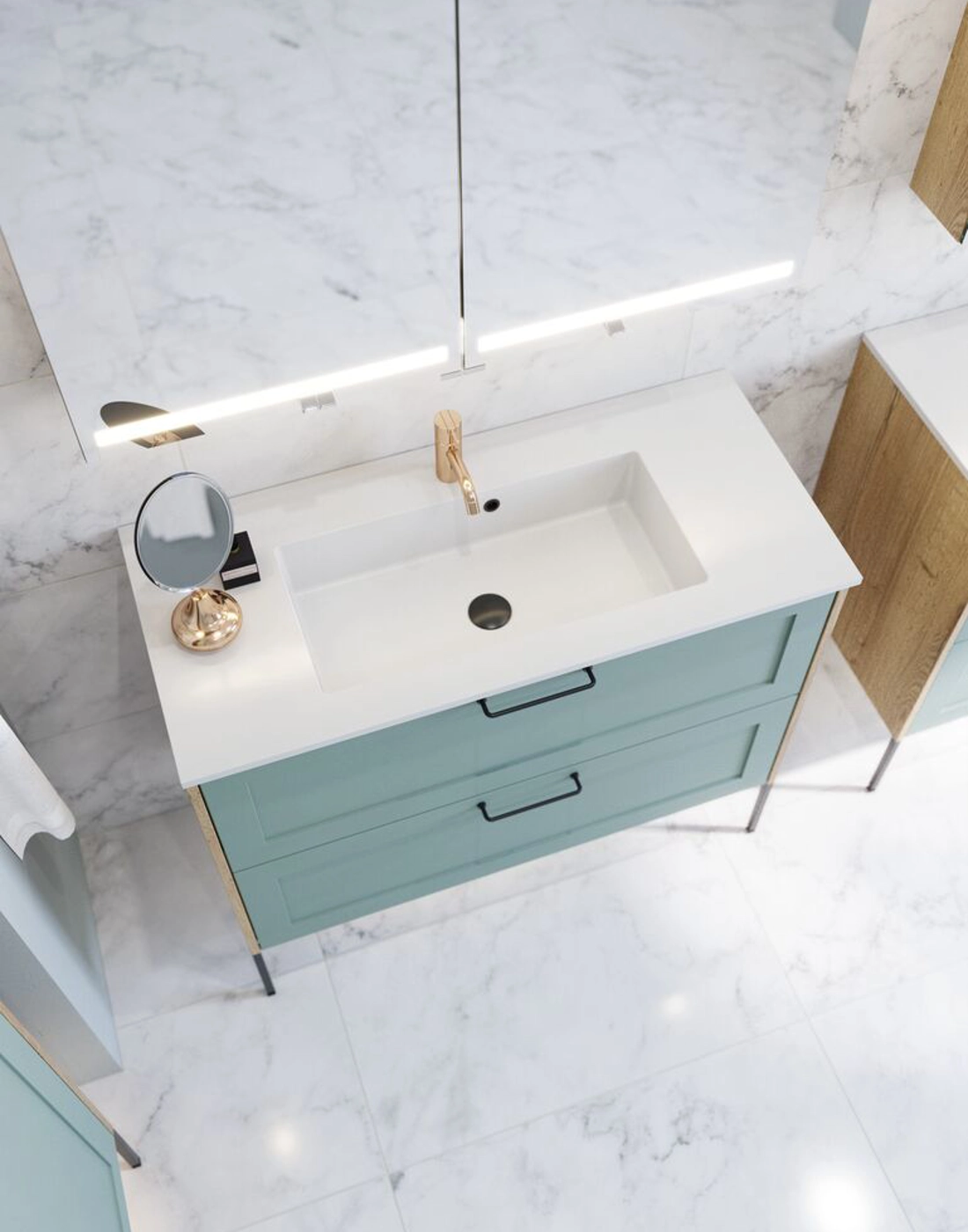 Der Level Spiegelschrank bietet Ihnen viel zusätzlichen Stauraum in Ihrem Badezimmer. Im Inneren des Spiegelschranks finden Sie mehrere Einlegeböden, einen Vergrößerungsspiegel, eine Magnetleiste, ein Metallablage und eine Steckdose. So haben Sie viel Platz für Ihre Zahnbürste, Ihren Rasierer, Cremes, Deodorant und vieles mehr. Der Spiegelschrank ist mit integrierter Beleuchtung oben und unten, die in Stärke und Wärme reguliert werden kann, so dass Sie das richtige Licht für Ihre Bedürfnisse selbst einstellen können. OBS: Für Produkte mit wahlfreie Farbe fällt eine Aufpreis (BI1) an. Einmalige Berechnung, unabhängig von der Anzahl der Elemente.