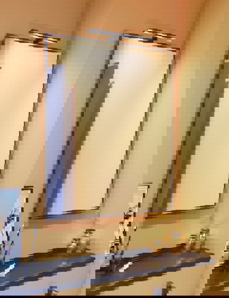 Die Libra Lampe ist eine elegante und moderne Beleuchtungslösung, die perfekt zu Spiegeln und Spiegelschränken passt. Mit ihrem stilvollen Design verleiht die Libra Lampe nicht nur Licht, sondern auch eine ästhetische Dimension im Badezimmerbereich. Die gleichmäßige Beleuchtung schafft eine angenehme Atmosphäre und sorgt für das richtige Licht im Alltag. Mit der Libra Lampe erhalten Sie eine harmonische Kombination aus Funktionalität und Design.