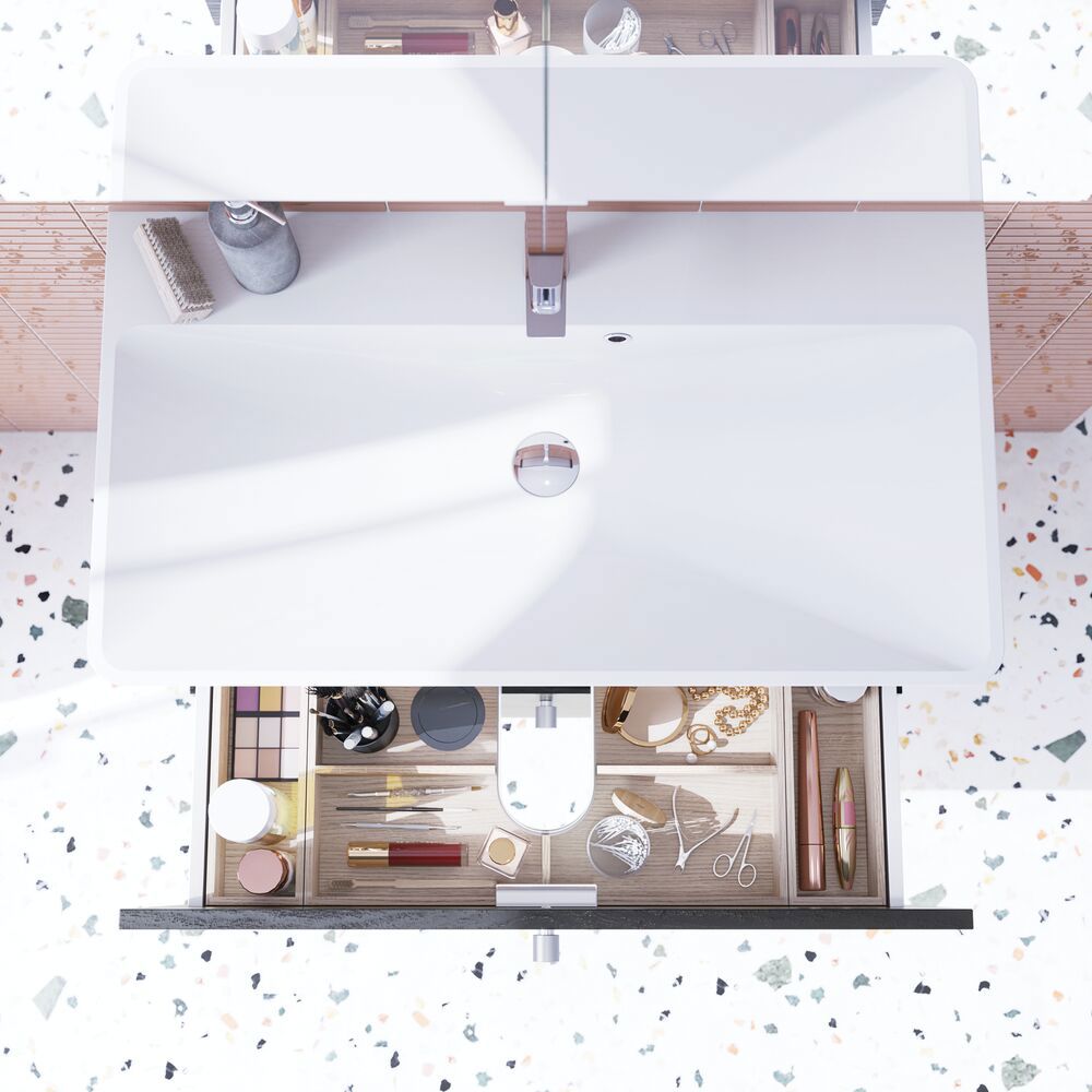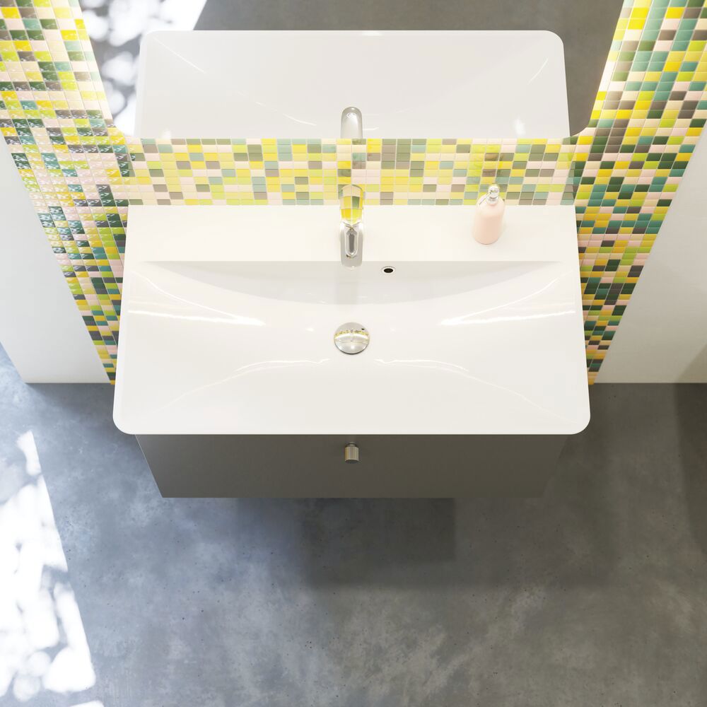 Marbelique ist ein einzigartiger Waschtisch, der das Beste aus Gussmarmor und Porzellan vereint. Indem wir den traditionellen Gießprozess herausfordern, haben wir ein Waschbecken geschaffen, das sowohl die präzisen, geraden Linien und Flächen nutzt, für die Gussmarmor bekannt ist, als auch die formalen Vorteile des Porzellans beibehält. Das Becken breitet sich elegant über das Möbel aus, und mit seinem scharf definierten Beckenrand wird der Platz optimal genutzt – sowohl mit einem geräumigen Becken als auch mit einer praktischen, flachen Ablagefläche hinten. Um sicherzustellen, dass Ihr Waschtisch über viele Jahre hinweg sein schönes Aussehen behält, ist er mit einer Oberfläche ausgestattet, die deutlich härter ist als frühere Gussmarmor-Waschtische.