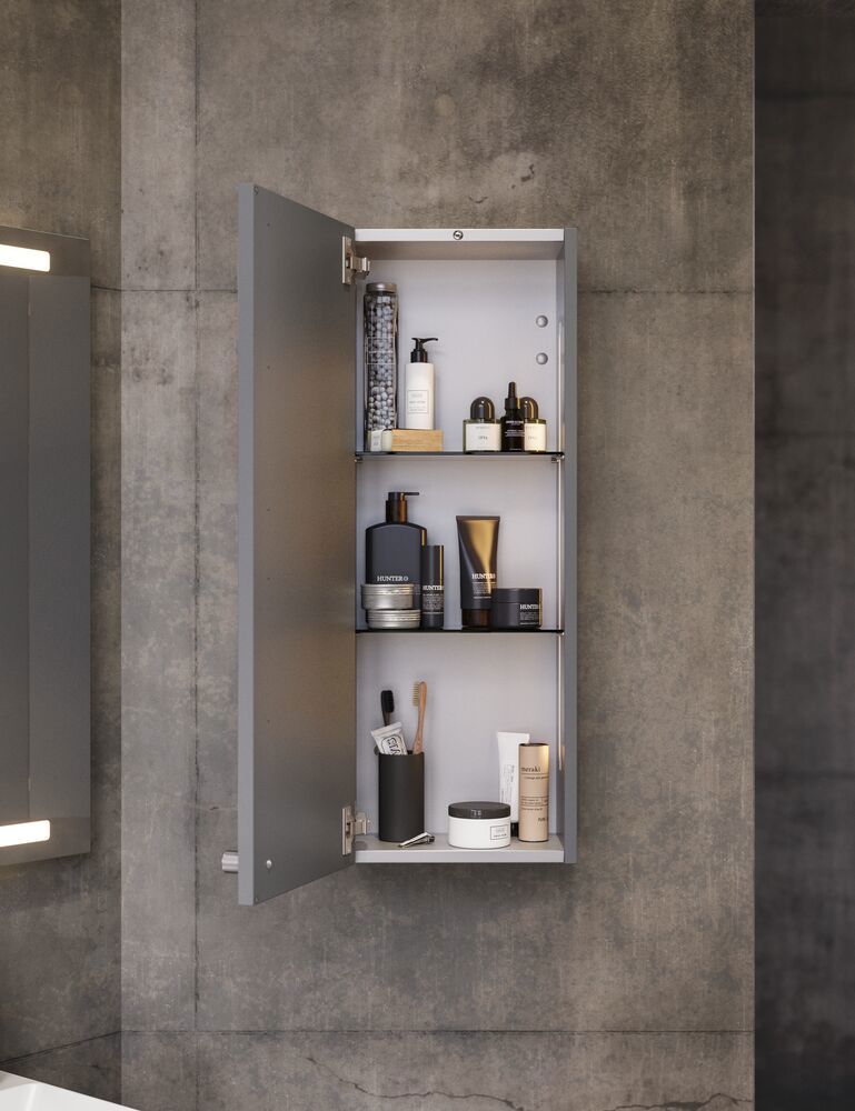Mit den Hängeschränken schaffen Sie Platz und Ordnung in Ihrem Badezimmer. Erhältlich mit 2 Glasböden, ist dieser elegante Schrank sowohl stilvoll als auch funktional. Verwenden Sie den Schrank als Stauraum in Ihrem Badezimmer, um Ihre Cremes, Deodorants usw. geordnet aufzubewahren. Der Schrank ist in verschiedenen Farben erhältlich, die zum Rest Ihres Badezimmers passen. OBS: Für Produkte mit wahlfreie Farbe fällt eine Aufpreis (BI1) an. Einmalige Berechnung, unabhängig von der Anzahl der Elemente. Überlegen Sie Ihre Badmöbel mit praktischem Zubehör auszustatten, an denen Sie täglich Freude haben werden. Wie z.B. LED-Beleuchtung in den Schubladen, Innenbeleuchtung in den Schränken, eine eingebaute Steckdose und LED-Beleuchtung unter dem Schrank inkl. Bewegungssensor und Lichtsteuerung die Ihren nächtlichen Besuch im Bad führt. Das Zubehör wählen Sie direkt mit Ihren Möbeln aus.