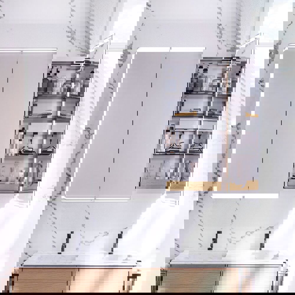Der Radience Spiegelschrank vereint modernes Design und praktische Aufbewahrung in einem. Hinter den eleganten Spiegeltüren finden Sie reichlich Platz für Ihre täglichen Toilettenartikel, sodass Sie Ihr Badezimmer leicht organisieren können. Der Lichtrahmen am Rand umrahmt Ihr Spiegelbild und erzeugt ein gemütliches Licht, das Sie kabellos direkt von der Tür aus steuern können. Mit einer Anti-Beschlag-Funktion im Spiegel und der Möglichkeit, verschiedene Größen und Farben zu wählen, ist Radience sowohl eine praktische als auch eine elegante Lösung - perfekt für den heutigen Trend, dass das Badezimmer sowohl funktional als auch persönlich sein soll. OBS: Für Produkte mit wahlfreie Farbe fällt eine Aufpreis (BI1) an. Einmalige Berechnung, unabhängig von der Anzahl der Elemente.