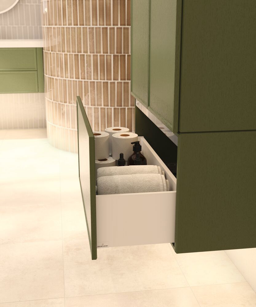 Rahmenfronten sind einer der größten Trends in der Innenarchitektur - und mit Calidris können Sie diesen eleganten Stil in Ihr Badezimmer bringen. Die schöne Rahmung schafft einen klassischen und doch modernen Look, der Ihren Möbeln Charakter und Persönlichkeit verleiht. Die Front ist in verschiedenen Farben und Ausführungen erhältlich, so dass Sie sie an Ihren Stil anpassen können. Ob Sie von einem hellen, nordischen Badezimmer träumen oder eine warme und exklusive Atmosphäre wünschen, die Rahmenfront kann den Ton angeben. Mit Calidris Rahmenfronten erhalten Sie einen Look, der sowohl den aktuellen Trends folgt als auch zeitlos ist und an dem Sie sich viele Jahre lang erfreuen können.  Hinweis: Diese Front funktioniert als Option für Ihre Möbel. Wählen Sie also zuerst die Größe und Artikelnummer Ihrer Badmöbel aus und fügen Sie dann die optionale Front zu Ihrer Bestellung hinzu.