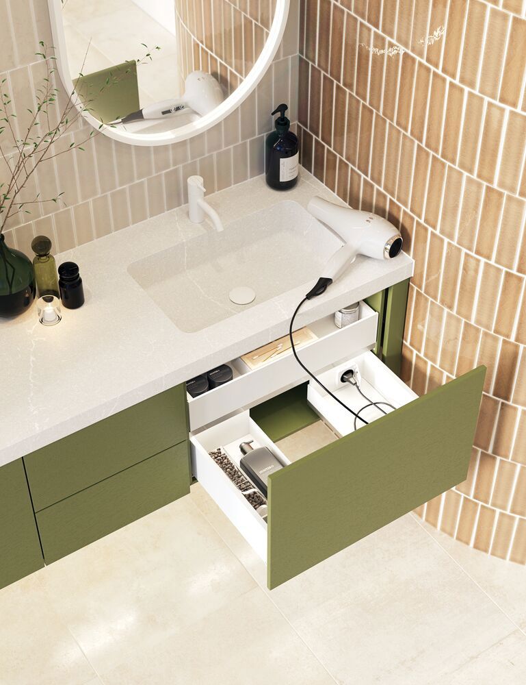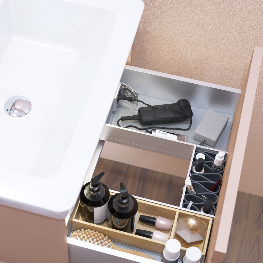 Dansani Calidris Schränke mit 1 Schublade sind die ideale Lösung für eine intelligente und stilvolle Aufbewahrung im Badezimmer. Ohne Platz für Abflüsse sind diese Schränke für diejenigen, die sich für eine asymmetrische Lösung mit einem maßgeschneiderten Waschbecken entscheiden, oder für diejenigen, die zusätzlichen Stauraum an anderer Stelle im Bad wünschen. Die geräumige Schublade sorgt für Ordnung im Bad und bietet viel Platz für Cremes, Shampoo, Haartrockner und vieles mehr. Der Dansani Calidris Schrank gibt Ihnen die Möglichkeit, Ihr Bad auf eine kohärente und schöne Art zu organisieren. OBS: Für Produkte mit Eiche und wahlfreie Farbe fällt eine Aufpreis (BI1) an. Einmalige Berechnung, unabhängig von der Anzahl der Elemente. Überlegen Sie Ihre Badmöbel mit praktischem Zubehör auszustatten, an denen Sie täglich Freude haben werden. Wie z.B. LED-Beleuchtung in den Schubladen, Innenbeleuchtung in den Schränken, eine eingebaute Steckdose und LED-Beleuchtung unter dem Schrank inkl. Bewegungssensor und Lichtsteuerung die Ihren nächtlichen Besuch im Bad führt. Das Zubehör wählen Sie direkt mit Ihren Möbeln aus.