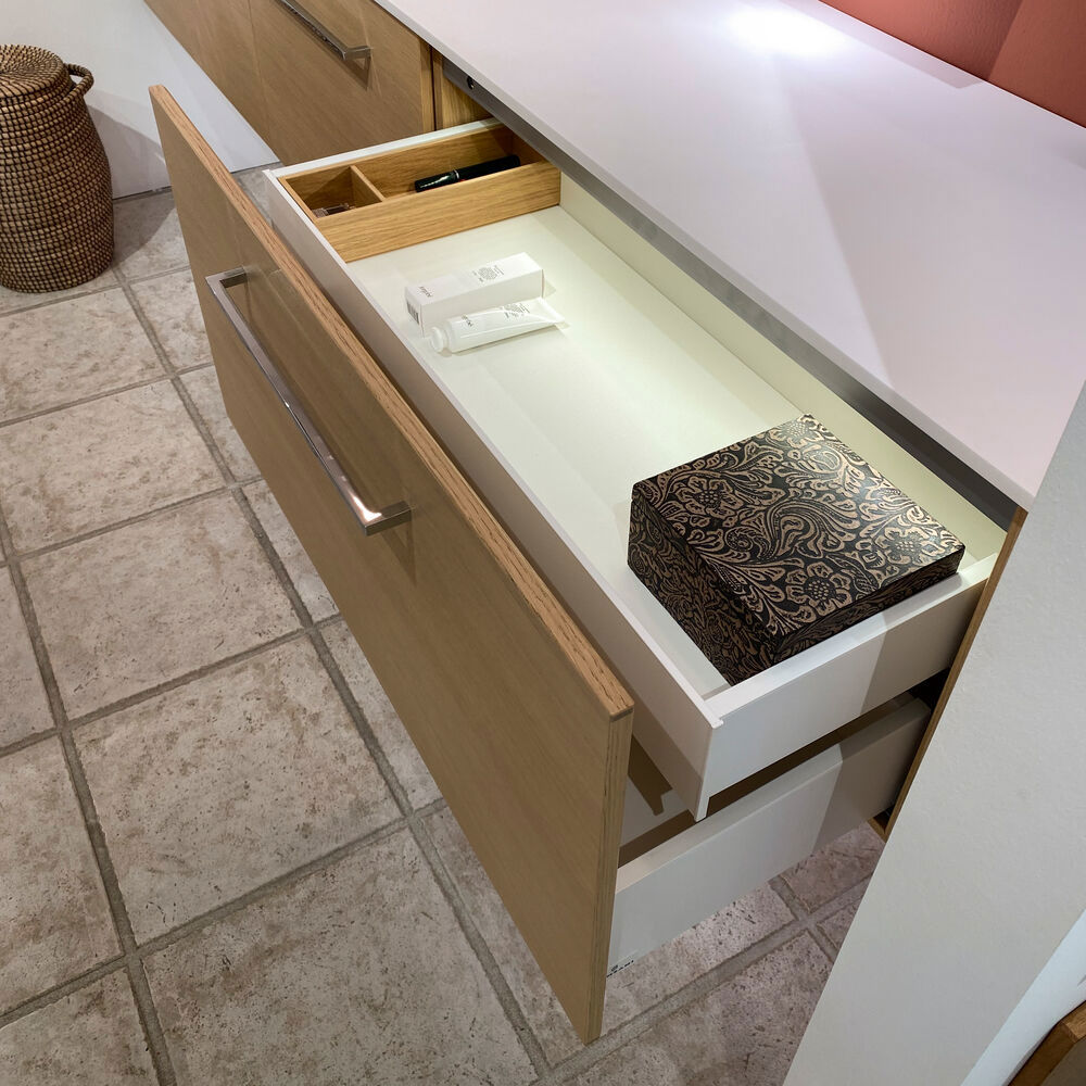 Dansani Calidris Schränke mit 1 Schublade sind die ideale Lösung für eine intelligente und stilvolle Aufbewahrung im Badezimmer. Ohne Platz für Abflüsse sind diese Schränke für diejenigen, die sich für eine asymmetrische Lösung mit einem maßgeschneiderten Waschbecken entscheiden, oder für diejenigen, die zusätzlichen Stauraum an anderer Stelle im Bad wünschen. Die geräumige Schublade sorgt für Ordnung im Bad und bietet viel Platz für Cremes, Shampoo, Haartrockner und vieles mehr. Der Dansani Calidris Schrank gibt Ihnen die Möglichkeit, Ihr Bad auf eine kohärente und schöne Art zu organisieren. OBS: Für Produkte mit Eiche und wahlfreie Farbe fällt eine Aufpreis (BI1) an. Einmalige Berechnung, unabhängig von der Anzahl der Elemente. Überlegen Sie Ihre Badmöbel mit praktischem Zubehör auszustatten, an denen Sie täglich Freude haben werden. Wie z.B. LED-Beleuchtung in den Schubladen, Innenbeleuchtung in den Schränken, eine eingebaute Steckdose und LED-Beleuchtung unter dem Schrank inkl. Bewegungssensor und Lichtsteuerung die Ihren nächtlichen Besuch im Bad führt. Das Zubehör wählen Sie direkt mit Ihren Möbeln aus.