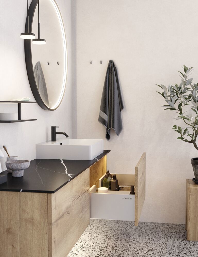 Schaffen Sie die ultimative Badezimmer-Oase mit dem Einzelschubladenschrank. Dieser vielseitige Schrank ist die perfekte Ergänzung zu Ihrem Waschtischunterschrank, und die tiefe Schublade bietet viel Stauraum für Ihre Toilettenartikel. Mit diesem Schrank erhalten Sie sowohl Funktionalität als auch Ästhetik. Erleben Sie die perfekte Kombination aus Form und Funktion mit dem Einzelschubladenschrank und schaffen Sie eine organisierte Atmosphäre, die Eleganz ausstrahlt. OBS: Für Produkte mit wahlfreie Farbe fällt eine Aufpreis (BI1) an. Einmalige Berechnung, unabhängig von der Anzahl der Elemente. Überlegen Sie Ihre Badmöbel mit praktischem Zubehör auszustatten, an denen Sie täglich Freude haben werden. Wie z.B. LED-Beleuchtung in den Schubladen, Innenbeleuchtung in den Schränken, eine eingebaute Steckdose und LED-Beleuchtung unter dem Schrank inkl. Bewegungssensor und Lichtsteuerung die Ihren nächtlichen Besuch im Bad führt. Das Zubehör wählen Sie direkt mit Ihren Möbeln aus.