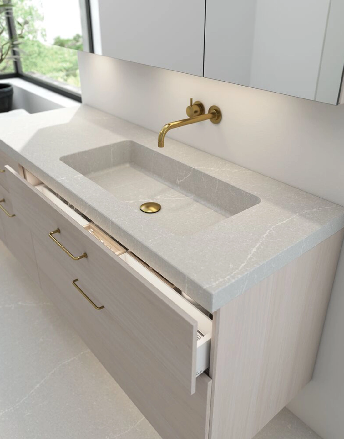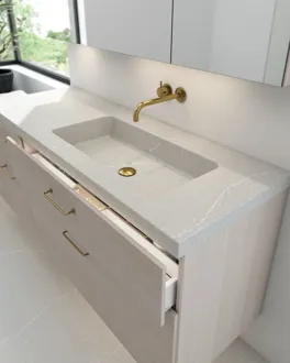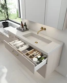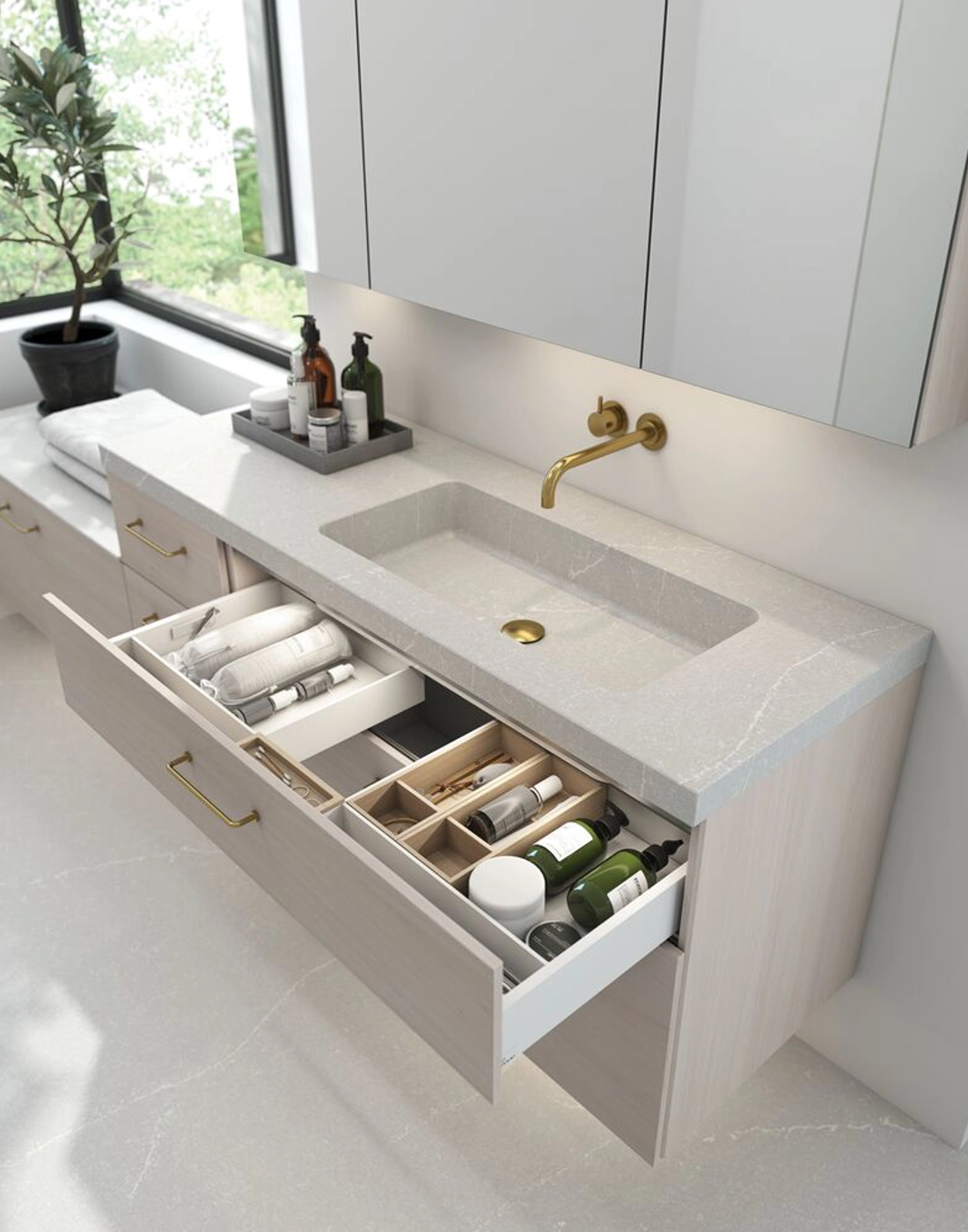 Dansani Calidris Schränke sind eine intelligente Lösung für Bäder mit wenig Platz. Mit einer geringen Tiefe von nur 16 cm bieten sie viel Stauraum, auch in kleineren Bädern. Diese Schränke kombinieren platzsparendes Design mit Funktionalität und Stil und sind damit ideal für die Organisation von Toilettenartikeln, Shampoo, Cremes und allem, was Sie sonst noch im Bad brauchen. Unabhängig von der Größe des Badezimmers bieten die Dansani Calidris Schränke eine praktische und elegante Aufbewahrungslösung. OBS: Für Produkte mit Eiche und wahlfreie Farbe fällt eine Aufpreis (BI1) an. Einmalige Berechnung, unabhängig von der Anzahl der Elemente. Überlegen Sie Ihre Badmöbel mit praktischem Zubehör auszustatten, an denen Sie täglich Freude haben werden. Wie z.B. LED-Beleuchtung in den Schubladen, Innenbeleuchtung in den Schränken, eine eingebaute Steckdose und LED-Beleuchtung unter dem Schrank inkl. Bewegungssensor und Lichtsteuerung die Ihren nächtlichen Besuch im Bad führt. Das Zubehör wählen Sie direkt mit Ihren Möbeln aus.