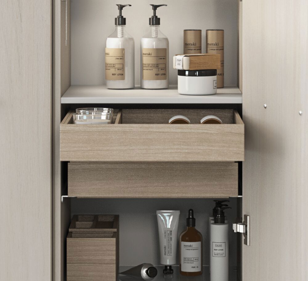 Der Dansani Calidris Schrank mit Tür bietet einfache und stilvolle Aufbewahrungslösungen für Ihr Badezimmer. Mit einem sauberen und zeitlosen Design, bietet die Tür Zugang zu einem geräumigen Stauraum für Toilettenartikel, Handtücher und andere Badutensilien. Die Ästhetik und Funktionalität des Schranks machen ihn zu einer idealen Ergänzung für jedes Badezimmerinterieur. Kombinieren Sie den Schrank mit anderen Dansani Calidris Schränken für ein einzigartiges Badezimmer, das zu Ihnen passt. OBS: Für Produkte mit Eiche und wahlfreie Farbe fällt eine Aufpreis (BI1) an. Einmalige Berechnung, unabhängig von der Anzahl der Elemente. Überlegen Sie Ihre Badmöbel mit praktischem Zubehör auszustatten, an denen Sie täglich Freude haben werden. Wie z.B. LED-Beleuchtung in den Schubladen, Innenbeleuchtung in den Schränken, eine eingebaute Steckdose und LED-Beleuchtung unter dem Schrank inkl. Bewegungssensor und Lichtsteuerung die Ihren nächtlichen Besuch im Bad führt. Das Zubehör wählen Sie direkt mit Ihren Möbeln aus.