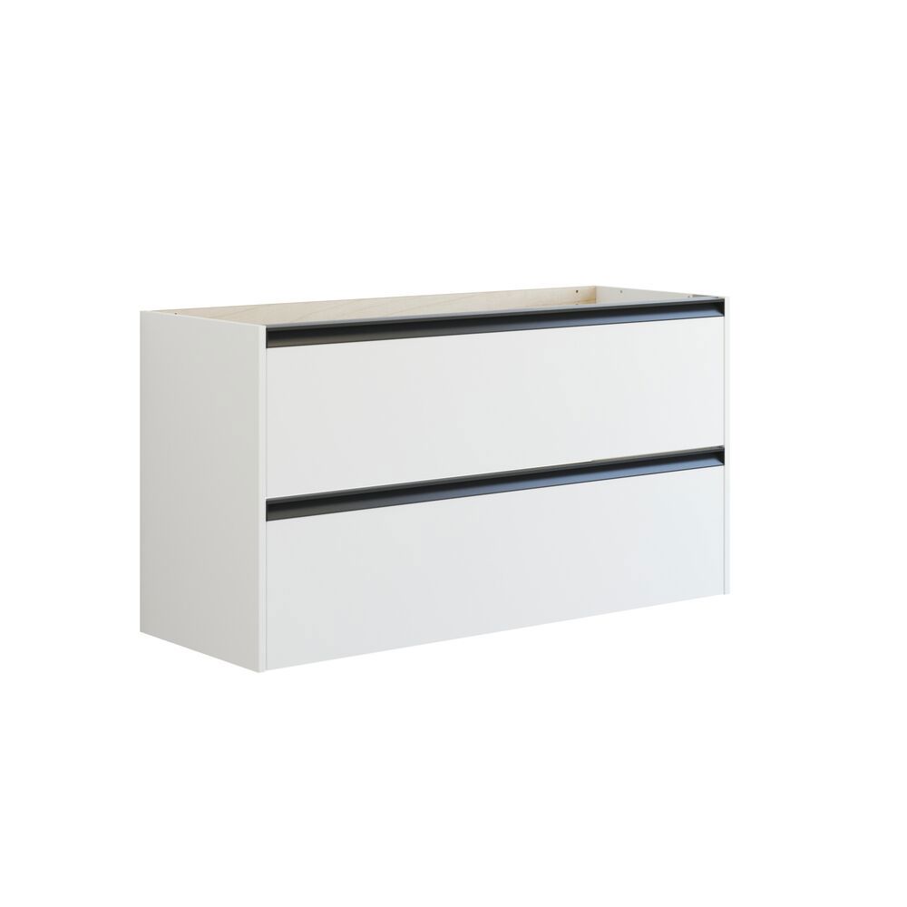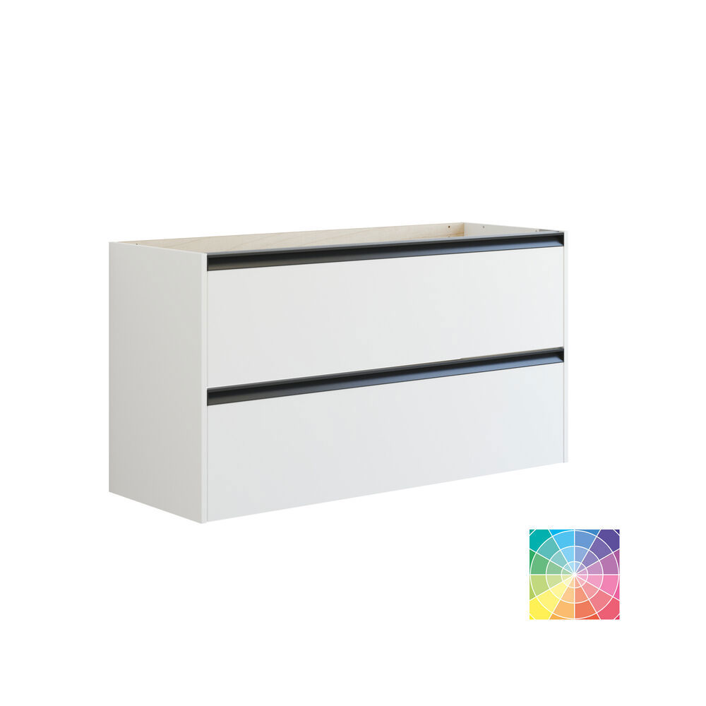 Optimieren Sie Ihre Badezimmereinrichtung mit einem Unterschrank mit integriertem Griff und zwei Schubladen. Die praktischen Schubladen ermöglichen einen einfachen Zugang zu Ihren Dingen, während das elegante Design einen modernen Ausdruck schafft. Die harmonische Farbe sorgt dafür, dass der Schrank perfekt in Ihr Badezimmer passt. Ob allein mit einer Arbeitsplatte oder als Teil einer Gesamtlösung mit einem Waschbecken, dieser Schrank wird sowohl Funktionalität als auch Eleganz in den Raum bringen. OBS: Für Produkte mit wahlfreie Farbe fällt eine Aufpreis (BI1) an. Einmalige Berechnung, unabhängig von der Anzahl der Elemente. Überlegen Sie Ihre Badmöbel mit praktischem Zubehör auszustatten, an denen Sie täglich Freude haben werden. Wie z.B. LED-Beleuchtung in den Schubladen, Innenbeleuchtung in den Schränken, eine eingebaute Steckdose und LED-Beleuchtung unter dem Schrank inkl. Bewegungssensor und Lichtsteuerung die Ihren nächtlichen Besuch im Bad führt. Das Zubehör wählen Sie direkt mit Ihren Möbeln aus.