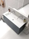 Gestalten Sie ein einzigartiges und einladendes Badezimmer mit einem Unterschrank mit Profilfront und zwei Schubladen. Dieser Schrank kombiniert Funktionalität mit einem auffälligen Design, das dem Raum ein interessantes visuelles Element verleiht. Die beiden Schubladen bieten ausreichend Stauraum, sodass Sie Ihre Badezimmerartikel leicht im Blick behalten können. Ob allein mit einer Arbeitsplatte oder zusammen mit einem Waschbecken, dieser Schrank bietet sowohl praktische Lösungen als auch einen stilvollen Akzent. Wählen Sie aus mehreren Farben, um den Schrank an Ihre Einrichtung anzupassen. Überlegen Sie Ihre Badmöbel mit praktischem Zubehör auszustatten, an denen Sie täglich Freude haben werden. Wie z.B. LED-Beleuchtung in den Schubladen, Innenbeleuchtung in den Schränken, eine eingebaute Steckdose und LED-Beleuchtung unter dem Schrank inkl. Bewegungssensor und Lichtsteuerung die Ihren nächtlichen Besuch im Bad führt. Das Zubehör wählen Sie direkt mit Ihren Möbeln aus.