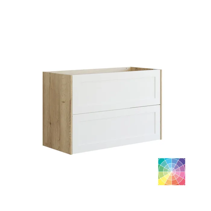 Geben Sie Ihrem Badezimmer einen eleganten Touch mit einem Waschtischunterschrank mit einem klassischen Rahmen und zwei Schubladen. Die Rahmenfront verleiht ihm einen modernen und stilvollen Look, der zu jeder Einrichtung passt. Die zwei Schubladen des Schranks bieten viel Stauraum und helfen Ihnen, den Überblick über Ihre Badutensilien zu behalten. Ob mit einer Arbeitsplatte darauf oder in Kombination mit einem Waschtischunterschrank, dieser Schrank trägt zu einer organisierten und stilvollen Atmosphäre in Ihrem Bad bei. OBS: Für Produkte mit wahlfreie Farbe fällt eine Aufpreis (BI1) an. Einmalige Berechnung, unabhängig von der Anzahl der Elemente. Überlegen Sie Ihre Badmöbel mit praktischem Zubehör auszustatten, an denen Sie täglich Freude haben werden. Wie z.B. LED-Beleuchtung in den Schubladen, Innenbeleuchtung in den Schränken, eine eingebaute Steckdose und LED-Beleuchtung unter dem Schrank inkl. Bewegungssensor und Lichtsteuerung die Ihren nächtlichen Besuch im Bad führt. Das Zubehör wählen Sie direkt mit Ihren Möbeln aus.