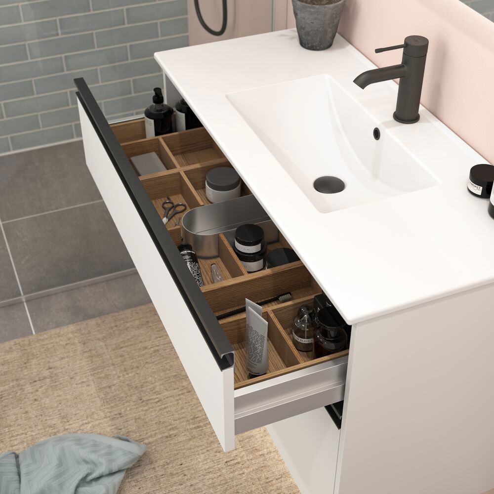 Die Dansani Calidris 2-Schubladen-Schränke sind die perfekte Lösung für alle, die in ihrem Badezimmer intelligente und stilvolle Aufbewahrung wünschen. Mit Calidris erhalten Sie durchdachtes dänisches Design, und diese Schränke wurden entworfen, um den Platz zu maximieren, ohne Kompromisse bei Funktionalität oder Ästhetik einzugehen. In den zwei geräumigen Schubladen können Sie Ihre Toilettenartikel, Handtücher und anderen Badutensilien übersichtlich und ordentlich aufbewahren. Das Design der Schränke ist einfach und zeitlos, was sie zu einer stilvollen Ergänzung für jedes Badezimmer macht. OBS: Für Produkte mit Eiche und wahlfreie Farbe fällt eine Aufpreis (BI1) an. Einmalige Berechnung, unabhängig von der Anzahl der Elemente. Überlegen Sie Ihre Badmöbel mit praktischem Zubehör auszustatten, an denen Sie täglich Freude haben werden. Wie z.B. LED-Beleuchtung in den Schubladen, Innenbeleuchtung in den Schränken, eine eingebaute Steckdose und LED-Beleuchtung unter dem Schrank inkl. Bewegungssensor und Lichtsteuerung die Ihren nächtlichen Besuch im Bad führt. Das Zubehör wählen Sie direkt mit Ihren Möbeln aus.