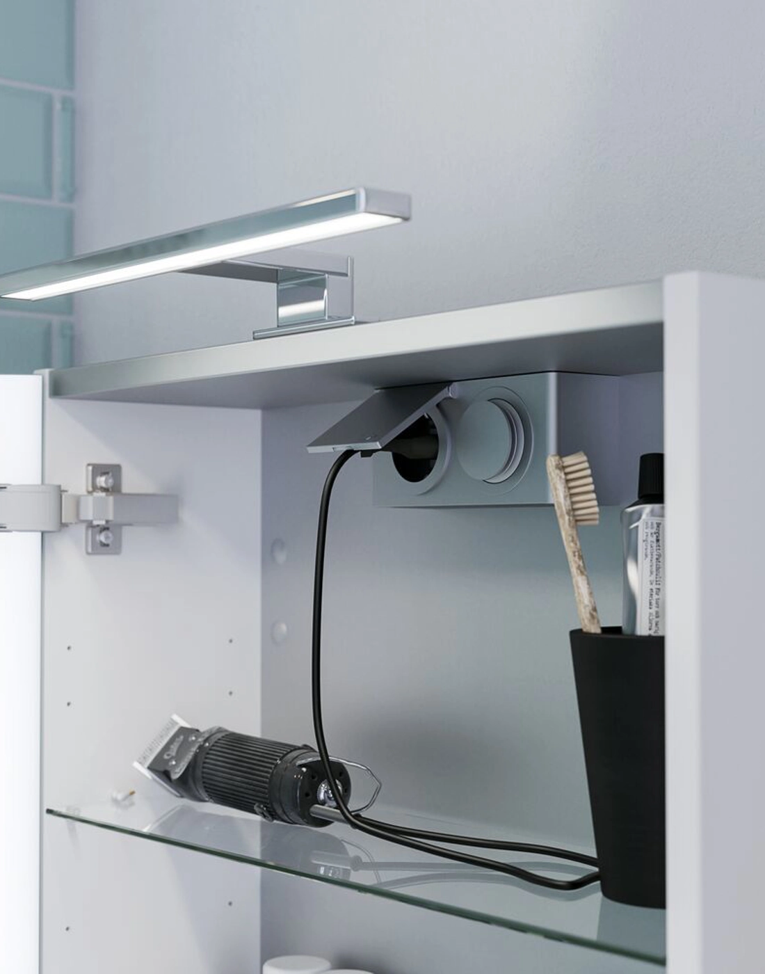 Der Select Spiegelschrank ist viel mehr als nur ein Spiegelschrank - er ist Ihr persönliches Badezimmer-Upgrade. Wählen Sie Ihre eigenen Lampen und schaffen Sie die perfekte Beleuchtung, um Ihren Tag mit Stil zu beginnen. Mit dem Spiegelschrank erhalten Sie viel Stauraum und eine Steckdose im Inneren des Spiegelschranks für Ihre Elektrogeräte. Erleben Sie Komfort und Eleganz in Einem mit dem Select Spiegelschrank - Ihr täglicher Begleiter für einen strahlenden Morgen.