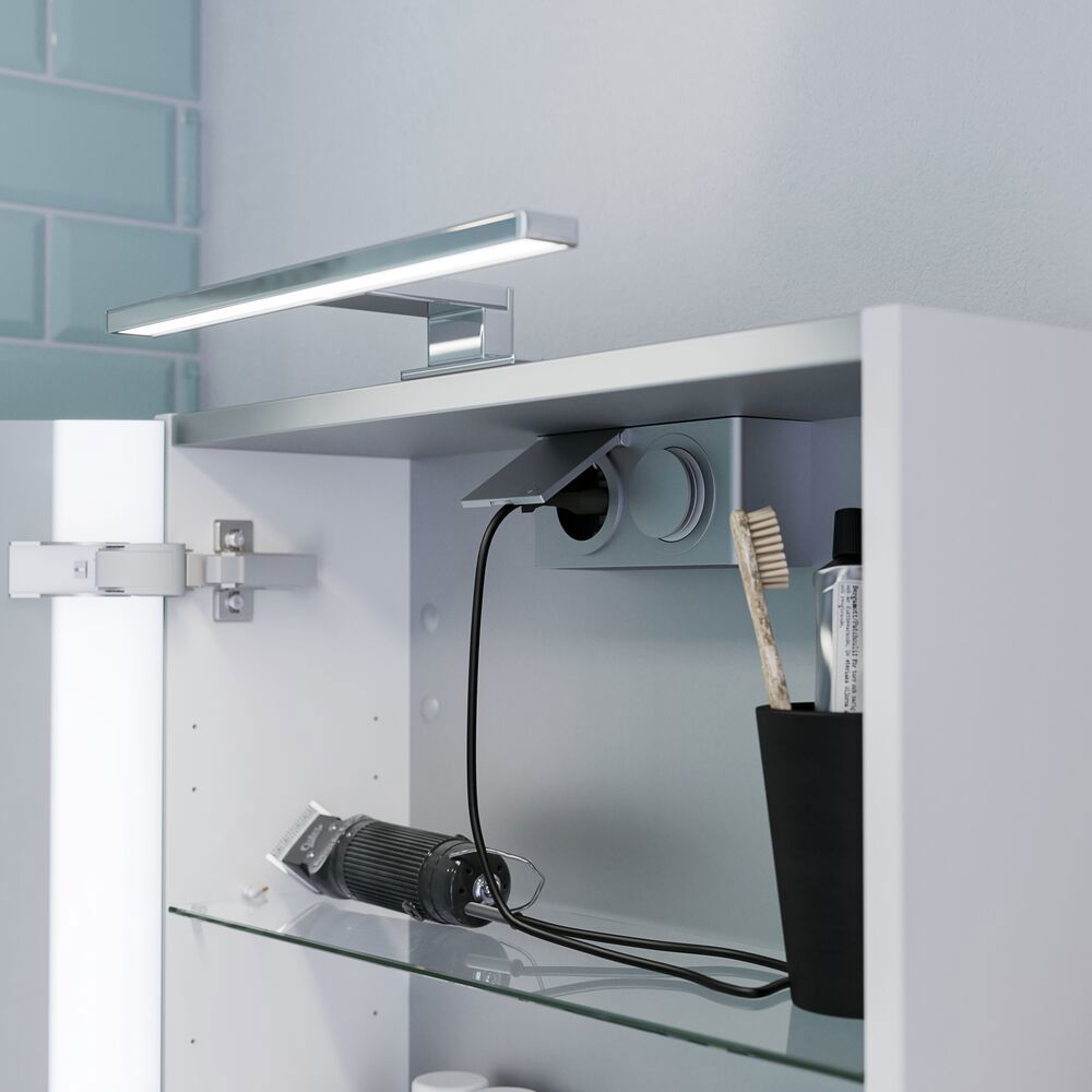 Der Select Spiegelschrank ist viel mehr als nur ein Spiegelschrank - er ist Ihr persönliches Badezimmer-Upgrade. Wählen Sie Ihre eigenen Lampen und schaffen Sie die perfekte Beleuchtung, um Ihren Tag mit Stil zu beginnen. Mit dem Spiegelschrank erhalten Sie viel Stauraum und eine Steckdose im Inneren des Spiegelschranks für Ihre Elektrogeräte. Erleben Sie Komfort und Eleganz in Einem mit dem Select Spiegelschrank - Ihr täglicher Begleiter für einen strahlenden Morgen.