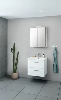 Der Select Spiegelschrank ist viel mehr als nur ein Spiegelschrank - er ist Ihr persönliches Badezimmer-Upgrade. Wählen Sie Ihre eigenen Lampen und schaffen Sie die perfekte Beleuchtung, um Ihren Tag mit Stil zu beginnen. Mit dem Spiegelschrank erhalten Sie viel Stauraum und eine Steckdose im Inneren des Spiegelschranks für Ihre Elektrogeräte. Erleben Sie Komfort und Eleganz in Einem mit dem Select Spiegelschrank - Ihr täglicher Begleiter für einen strahlenden Morgen.