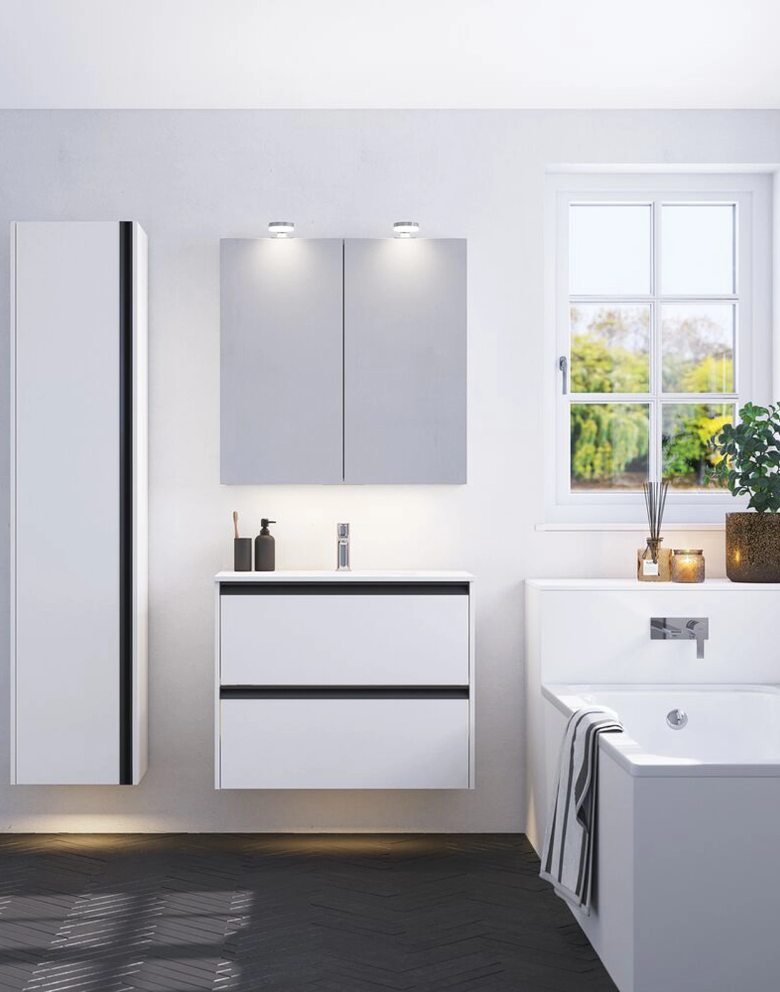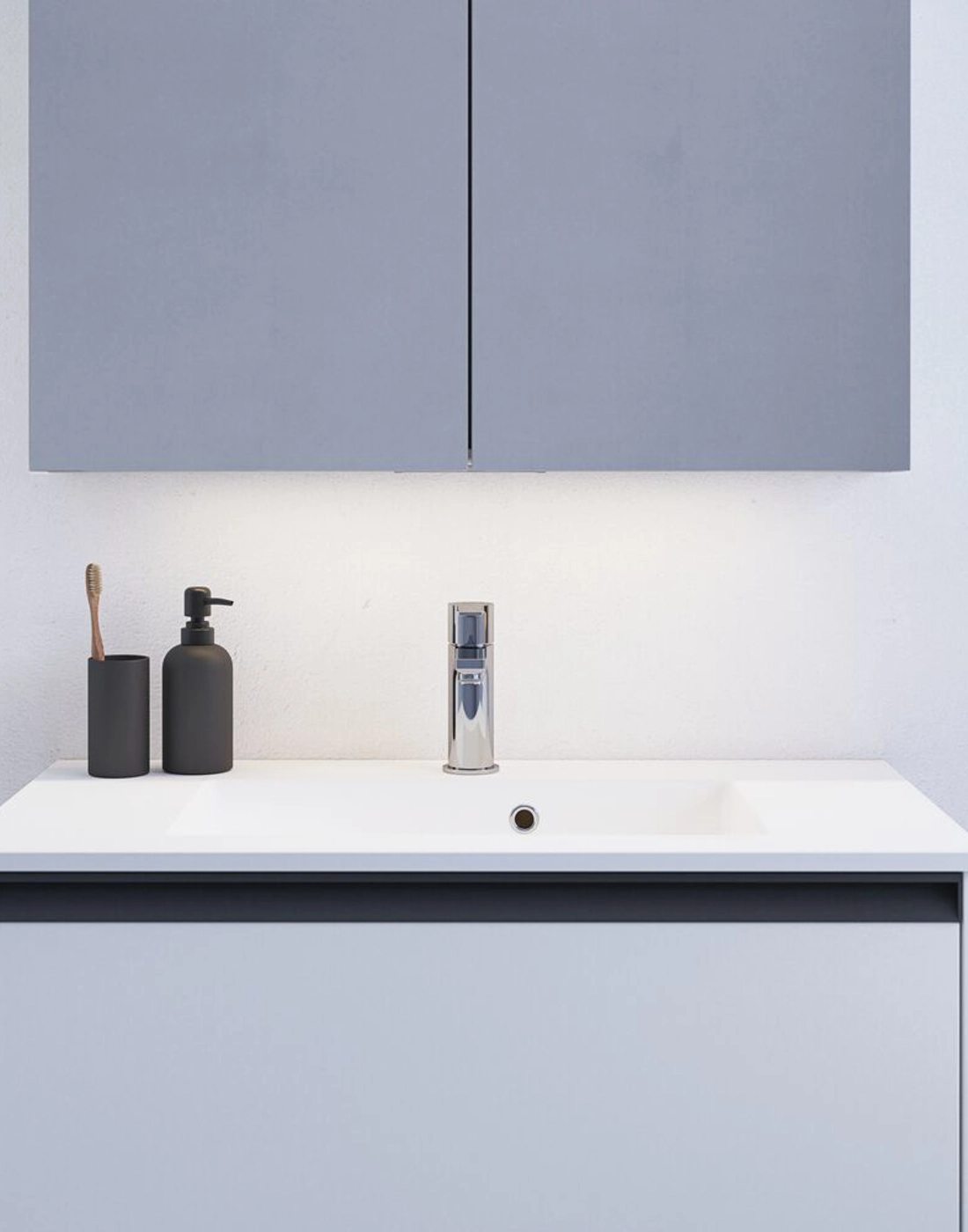 Mit dem Style Spiegelschrank erhalten Sie praktische Aufbewahrung und stilvolles Design. Der Spiegelschrank ist perfekt für die Aufbewahrung all Ihrer Cremes, Deodorants, Nagelscherer, Zahnbürsten und mehr. Fügen Sie dem Spiegelschrank eine Lampe hinzu und steuern Sie die Temperatur und die Stärke des Lichts mit einer einzigen Berührung. Der schöne Spiegelschrank verfügt über eine Magnetleiste, eine Metallablage, einen Vergrößerungsspiegel und eine Steckdose, die Ihre morgendliche und abendliche Routine viel einfacher macht. OBS: Für Produkte mit wahlfreie Farbe fällt eine Aufpreis (BI1) an. Einmalige Berechnung, unabhängig von der Anzahl der Elemente.