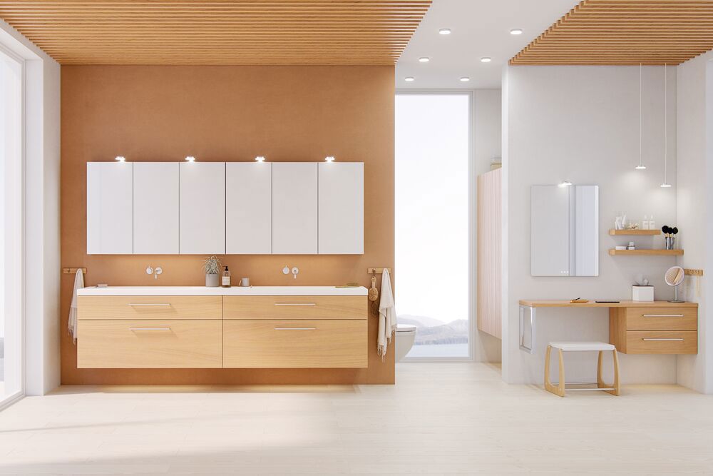 Die Holzarbeitsplatten der Serie Calidris von Dansani verleihen Ihrem Bad einen Hauch von natürlicher Eleganz. Diese maßgefertigten Arbeitsplatten sind aus hochwertigen Holz gefertigt und auf die Calidris-Möbel abgestimmt, wodurch eine harmonische Verbindung zwischen Funktionalität und Ästhetik entsteht. Die warme und authentische Holztextur verleiht dem Raum einen warmen Ausdruck und ein Gefühl von Luxus und Qualität. OBS: Für Produkte mit Eiche und wahlfreie Farbe fällt eine Aufpreis (BI1) an. Einmalige Berechnung, unabhängig von der Anzahl der Elemente.
