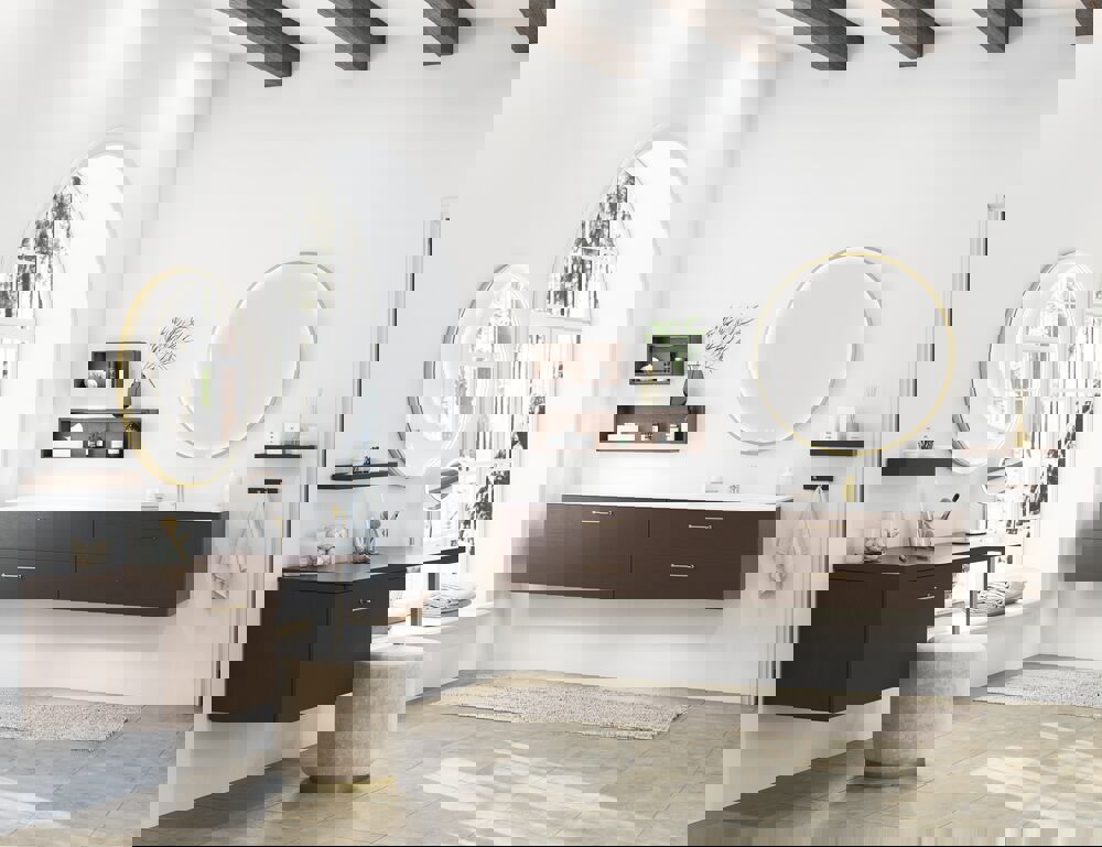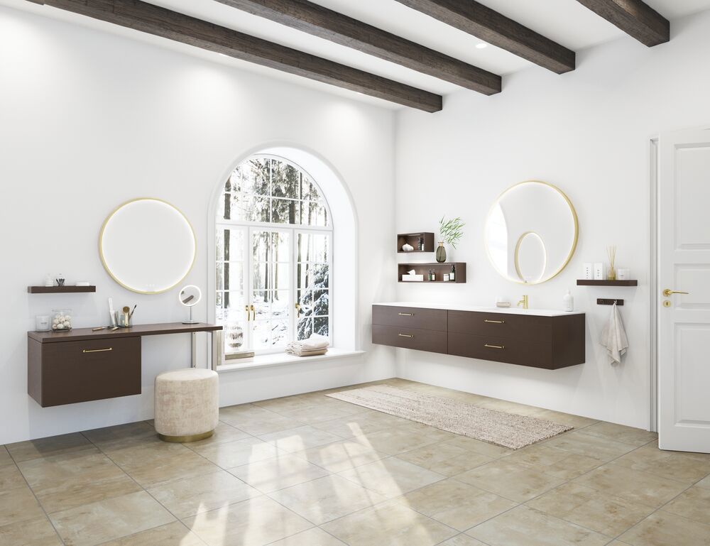 Verleihen Sie Ihrem Badezimmer eine maßgeschneiderte Eleganz mit den Holztischplatten aus der Dansani Calidris-Serie. Diese einzigartigen Tischplatten sind perfekt auf die Calidris-Möbel abgestimmt und verleihen Ihrem Raum eine raffinierte Dimension. Ob es der warme Schein von Eiche oder der dezente Charme von Walnuss ist, die Tischplatten aus Holz verleihen Ihrer Einrichtung ein Gefühl von authentischer Handwerkskunst und zeitloser Schönheit.