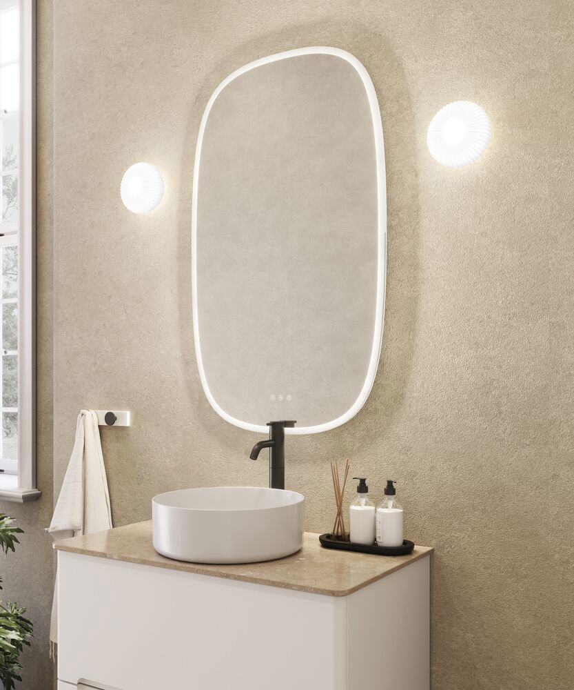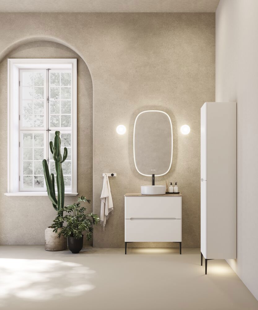 Tischplatten aus Silestone mit abgerundeten Ecken verbinden exklusives Design mit hoher Leistung - und passen hervorragend zur Serie Vintage mit integrierten Griffen, bei der auch die Möbel die weichen, abgerundeten Formen aufweisen. Das Ergebnis ist ein harmonisches Ganzes im Bad, in dem Möbel und Arbeitsplatte die gleiche Designsprache sprechen. Die in einem fortschrittlichen technologischen Verfahren aus natürlichem Quarz hergestellte Oberfläche ist widerstandsfähig, schmutzabweisend und leicht zu pflegen. Die harte, glatte Oberfläche macht die Arbeitsplatte widerstandsfähig gegen alltägliche Beanspruchung und bewahrt ihr luxuriöses Aussehen über viele Jahre hinweg. Silestone ist in einer breiten Palette von Farben und Mustern erhältlich - von klassischem, zeitlosem Weiß bis hin zu kräftigen Farbtönen - so dass Sie genau den Look kreieren können, der zu Ihrem persönlichen Stil passt. Wie auch immer Sie sich entscheiden, die Arbeitsplatte wird Ihrem Bad einen Hauch von Eleganz und Raffinesse verleihen. Bitte beachten Sie, dass die Farbe der Arbeitsplatte von der gezeigten Abbildung abweichen kann. Wir empfehlen daher, dass Sie sich ein Muster im Fachhandel ansehen, bevor Sie sich entscheiden.