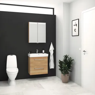Mit dem Spiegelschrank Top bringen Sie Ihren Morgen in Schwung. Dieser Spiegelschrank ist oben mit integrierter Beleuchtung ausgestattet, und im Inneren des Spiegelschranks finden Sie viel Stauraum und eine Steckdose mit Schalter. Sie bekommen also viel mehr, als Sie vielleicht erwarten. Die Seitenteile der Spiegelschrank sind selbstverständlich in schönen Farben erhältlich, so dass Sie den Spiegelschrank auf Ihre Badmöbel und den Rest des Badezimmers abstimmen können.