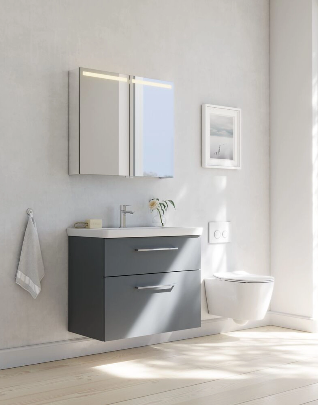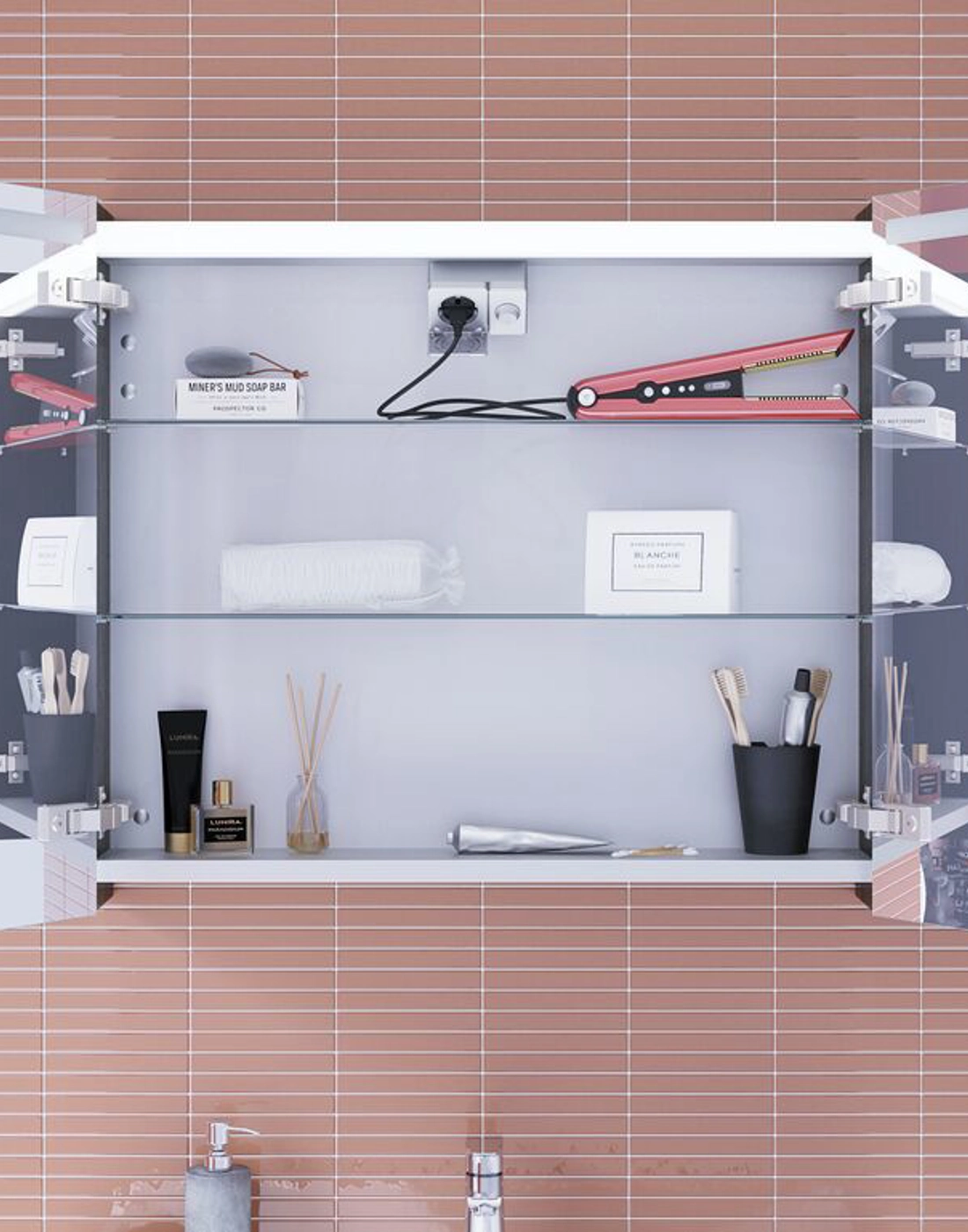 Mit dem Spiegelschrank Top bringen Sie Ihren Morgen in Schwung. Dieser Spiegelschrank ist oben mit integrierter Beleuchtung ausgestattet, und im Inneren des Spiegelschranks finden Sie viel Stauraum und eine Steckdose mit Schalter. Sie bekommen also viel mehr, als Sie vielleicht erwarten. Die Seitenteile der Spiegelschrank sind selbstverständlich in schönen Farben erhältlich, so dass Sie den Spiegelschrank auf Ihre Badmöbel und den Rest des Badezimmers abstimmen können.