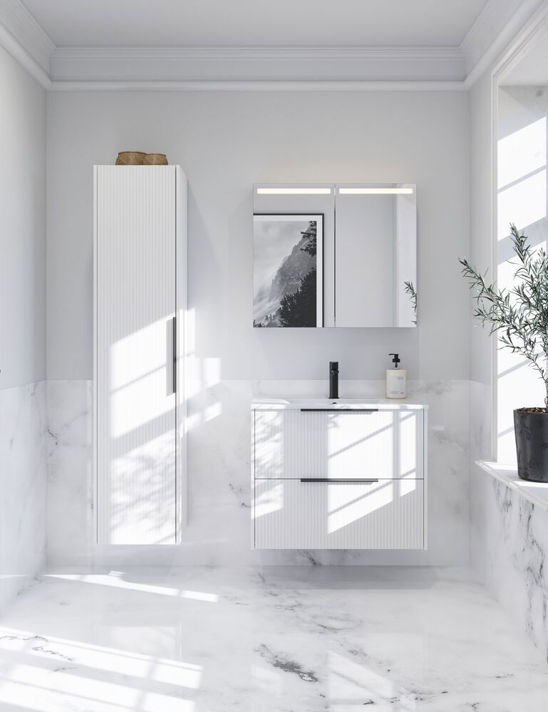 Mit dem Spiegelschrank Top bringen Sie Ihren Morgen in Schwung. Dieser Spiegelschrank ist oben mit integrierter Beleuchtung ausgestattet, und im Inneren des Spiegelschranks finden Sie viel Stauraum und eine Steckdose mit Schalter. Sie bekommen also viel mehr, als Sie vielleicht erwarten. Die Seitenteile der Spiegelschrank sind selbstverständlich in schönen Farben erhältlich, so dass Sie den Spiegelschrank auf Ihre Badmöbel und den Rest des Badezimmers abstimmen können.
