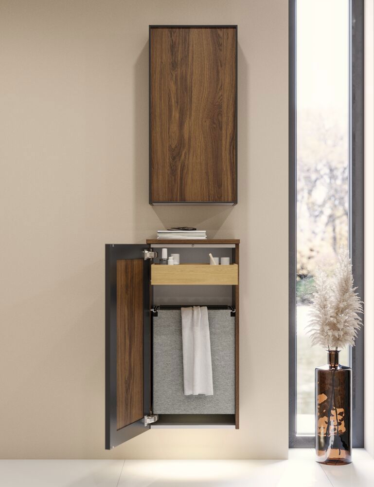 Der Unterschrank mit schwarzem Rahmen in Version B bietet eine funktionale und stilvolle Lösung für Ihr Badezimmer. Mit einer Breite von 40 cm und einer Tiefe von 35 cm ist dieser Unterschrank mit einer Ausziehablage und einem Wäschebeutel ausgestattet, was ihn ideal für die Aufbewahrung von Kosmetik und Wäsche macht. Der schwarze Rahmen verleiht Ihrem Badezimmer eine moderne Note, während das praktische Design dafür sorgt, dass alles organisiert und leicht zugänglich bleibt. Mit diesem Unterschrank können Sie Ihren Stauraum optimieren und eine ordentliche Umgebung schaffen, in der Sie alles, was Sie benötigen, mühelos finden können. OBS: Für Produkte mit wahlfreie Farbe fällt eine Aufpreis (BI1) an. Einmalige Berechnung, unabhängig von der Anzahl der Elemente. Überlegen Sie Ihre Badmöbel mit praktischem Zubehör auszustatten, an denen Sie täglich Freude haben werden. Wie z.B. LED-Beleuchtung in den Schubladen, Innenbeleuchtung in den Schränken, eine eingebaute Steckdose und LED-Beleuchtung unter dem Schrank inkl. Bewegungssensor und Lichtsteuerung die Ihren nächtlichen Besuch im Bad führt. Das Zubehör wählen Sie direkt mit Ihren Möbeln aus.