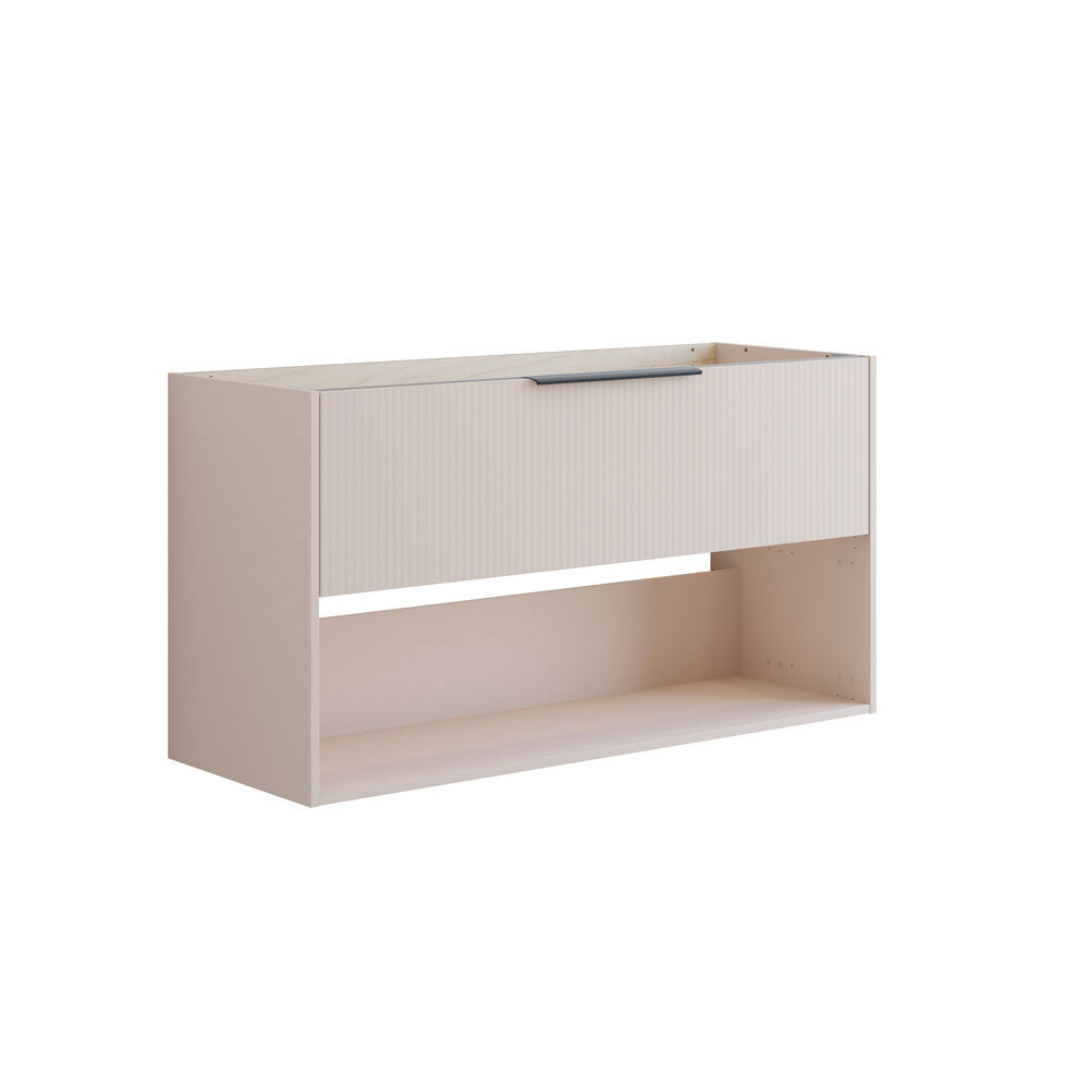 Dieser Waschtischunterschrank vereint das Beste aus zwei Welten: eine praktische Schublade, eine offene Fläche zur Präsentation Ihrer Lieblingsstücke und eine gestreifte Front für einen einzigartigen und eleganten Look. Wählen Sie zwischen den Farben Weiß, Sand oder Hellblau und finden Sie die Farbe, die am besten zu Ihrem Badezimmer passt. Der Griff ist bereits montiert, so dass er sofort einsatzbereit ist.