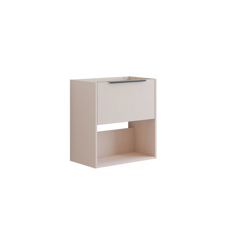 Dieser stilvolle Waschtischunterschrank mit einer breiten Schublade verbindet Funktionalität mit nordischer Eleganz. Die Schublade ist geräumig und voll ausziehbar, so dass Sie einen perfekten Überblick über Ihre täglichen Produkte haben. Hochwertige Gleitschienen mit Soft-Close-Funktion sorgen für ein leises und komfortables Schließen. Der im Lieferumfang enthaltene schwarze Griff unterstreicht den modernen Look, während die gestreifte, matte weiße Oberfläche dem Badezimmer Struktur und einen ruhigen, raffinierten Look verleiht.