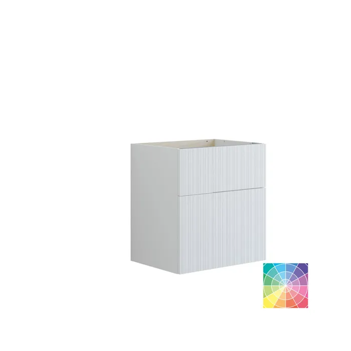 Erneuere dein Badezimmer mit einem Waschtischunterschrank mit 2 Schubladen. Dieser stilvolle Schrank ist 64 cm hoch und hat eine zusätzliche hohe Bodenschublade, die dir mehr Stauraum für deine Badezimmerartikel bietet. Die geriffelte Front verleiht dem Schrank ein einzigartiges und modernes Aussehen, das in der Einrichtung heraussticht. Wähle aus mehreren verschiedenen Farben, um den Schrank an deinen persönlichen Stil anzupassen. Mit diesem Waschtischunterschrank kannst du deine Sachen problemlos organisieren und alles ordentlich halten. Der Waschtischunterschrank mit 2 Schubladen bietet sowohl praktische Funktionalität als auch ein schönes Design, was ihn zu einer hervorragenden Ergänzung für dein Badezimmer macht. Mache deinen Raum mit diesem fantastischen Waschtischunterschrank organisierter und eleganter. OBS: Für Produkte mit wahlfreie Farbe fällt eine Aufpreis (BI1) an. Einmalige Berechnung, unabhängig von der Anzahl der Elemente. Überlegen Sie Ihre Badmöbel mit praktischem Zubehör auszustatten, an denen Sie täglich Freude haben werden. Wie z.B. LED-Beleuchtung in den Schubladen, Innenbeleuchtung in den Schränken, eine eingebaute Steckdose und LED-Beleuchtung unter dem Schrank inkl. Bewegungssensor und Lichtsteuerung die Ihren nächtlichen Besuch im Bad führt. Das Zubehör wählen Sie direkt mit Ihren Möbeln aus.