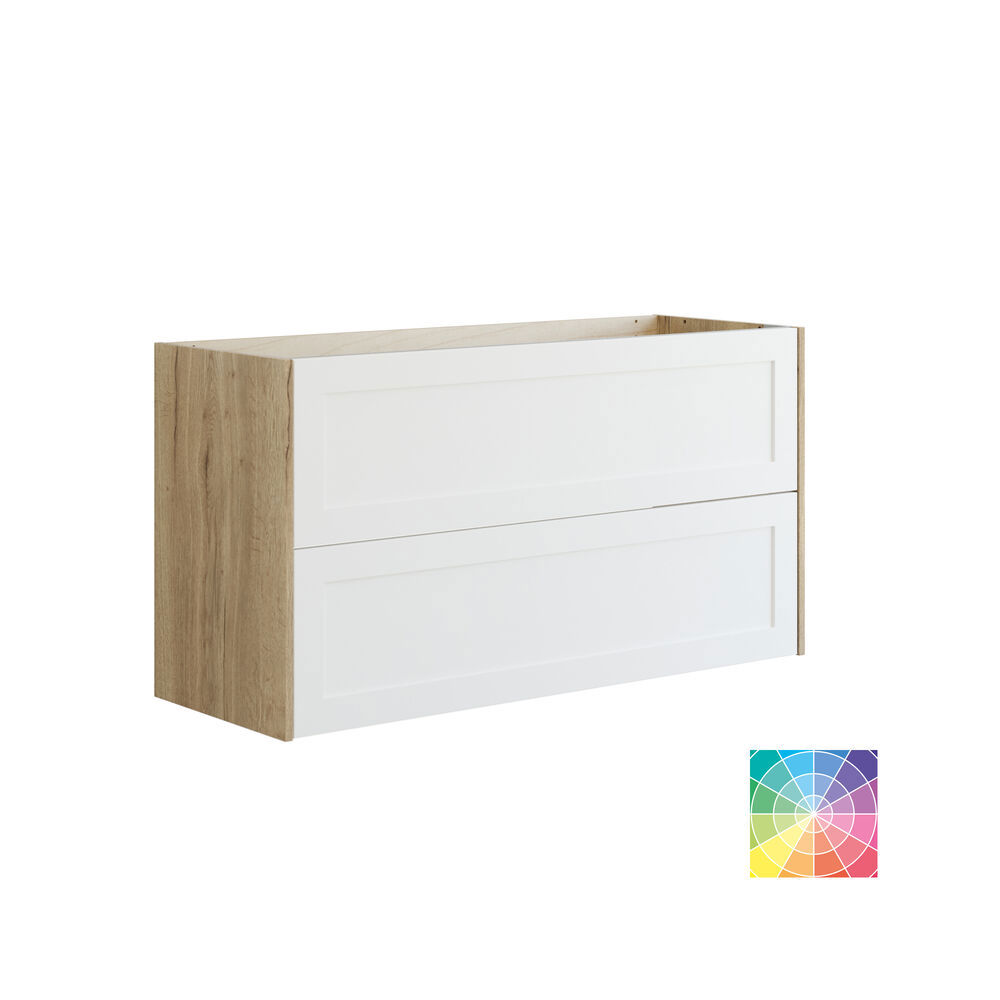 Erneuern Sie Ihr Badezimmer mit dem Waschtischunterschrank mit Rahmenfront. Dieser Schrank bietet zwei geräumige Schubladen, jede 32 cm hoch, und reichlich Platz für Ihre Badezimmerutensilien. Die Rahmenfront verleiht Ihrem Badezimmer eine moderne und elegante Note, die als ästhetische Ergänzung dient. Das zeitlose Design garantiert, dass der Schrank in jede Einrichtung passt und für eine gut organisierte und elegante Atmosphäre sorgt. OBS: Für Produkte mit wahlfreie Farbe fällt eine Aufpreis (BI1) an. Einmalige Berechnung, unabhängig von der Anzahl der Elemente. Überlegen Sie Ihre Badmöbel mit praktischem Zubehör auszustatten, an denen Sie täglich Freude haben werden. Wie z.B. LED-Beleuchtung in den Schubladen, Innenbeleuchtung in den Schränken, eine eingebaute Steckdose und LED-Beleuchtung unter dem Schrank inkl. Bewegungssensor und Lichtsteuerung die Ihren nächtlichen Besuch im Bad führt. Das Zubehör wählen Sie direkt mit Ihren Möbeln aus.