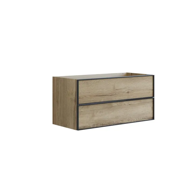 Waschtischunterschrank mit 2 Schubladen, schwarzer Alurahmen