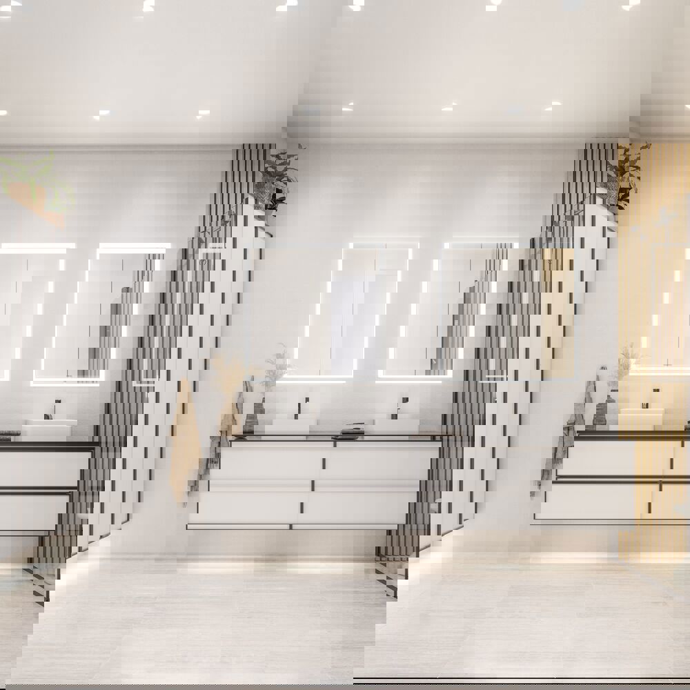 Upgraden Sie Ihr Badezimmer mit einem Waschtischunterschrank mit 2 Schubladen. Dieser stilvolle Schrank ist 48 cm hoch und 44 cm tief, ideal, um Ihre Badezimmerartikel zu organisieren. Der elegante schwarze Rahmen um die Schubladen verleiht einen modernen und schlichten Look, der zu jeder Einrichtung passt. Wählen Sie aus verschiedenen Farben, um diejenige zu finden, die am besten zu Ihrem Stil passt. Der Schrank bietet intelligente Aufbewahrung, sodass Sie ganz einfach Ordnung halten können. Der Waschtischunterschrank mit 2 Schubladen kombiniert Funktionalität mit Ästhetik und ist eine schöne Ergänzung für Ihr Badezimmer. Machen Sie Ihren Raum organisierter und einladender mit diesem fantastischen Waschtischunterschrank. OBS: Für Produkte mit wahlfreie Farbe fällt eine Aufpreis (BI1) an. Einmalige Berechnung, unabhängig von der Anzahl der Elemente. Überlegen Sie Ihre Badmöbel mit praktischem Zubehör auszustatten, an denen Sie täglich Freude haben werden. Wie z.B. LED-Beleuchtung in den Schubladen, Innenbeleuchtung in den Schränken, eine eingebaute Steckdose und LED-Beleuchtung unter dem Schrank inkl. Bewegungssensor und Lichtsteuerung die Ihren nächtlichen Besuch im Bad führt. Das Zubehör wählen Sie direkt mit Ihren Möbeln aus.