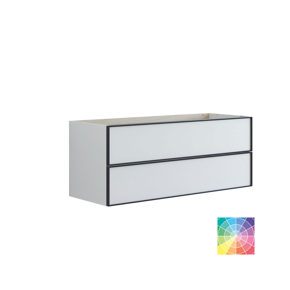 Upgraden Sie Ihr Badezimmer mit einem Waschtischunterschrank mit 2 Schubladen. Dieser stilvolle Schrank ist 48 cm hoch und 44 cm tief, ideal, um Ihre Badezimmerartikel zu organisieren. Der elegante schwarze Rahmen um die Schubladen verleiht einen modernen und schlichten Look, der zu jeder Einrichtung passt. Wählen Sie aus verschiedenen Farben, um diejenige zu finden, die am besten zu Ihrem Stil passt. Der Schrank bietet intelligente Aufbewahrung, sodass Sie ganz einfach Ordnung halten können. Der Waschtischunterschrank mit 2 Schubladen kombiniert Funktionalität mit Ästhetik und ist eine schöne Ergänzung für Ihr Badezimmer. Machen Sie Ihren Raum organisierter und einladender mit diesem fantastischen Waschtischunterschrank. OBS: Für Produkte mit wahlfreie Farbe fällt eine Aufpreis (BI1) an. Einmalige Berechnung, unabhängig von der Anzahl der Elemente. Überlegen Sie Ihre Badmöbel mit praktischem Zubehör auszustatten, an denen Sie täglich Freude haben werden. Wie z.B. LED-Beleuchtung in den Schubladen, Innenbeleuchtung in den Schränken, eine eingebaute Steckdose und LED-Beleuchtung unter dem Schrank inkl. Bewegungssensor und Lichtsteuerung die Ihren nächtlichen Besuch im Bad führt. Das Zubehör wählen Sie direkt mit Ihren Möbeln aus.