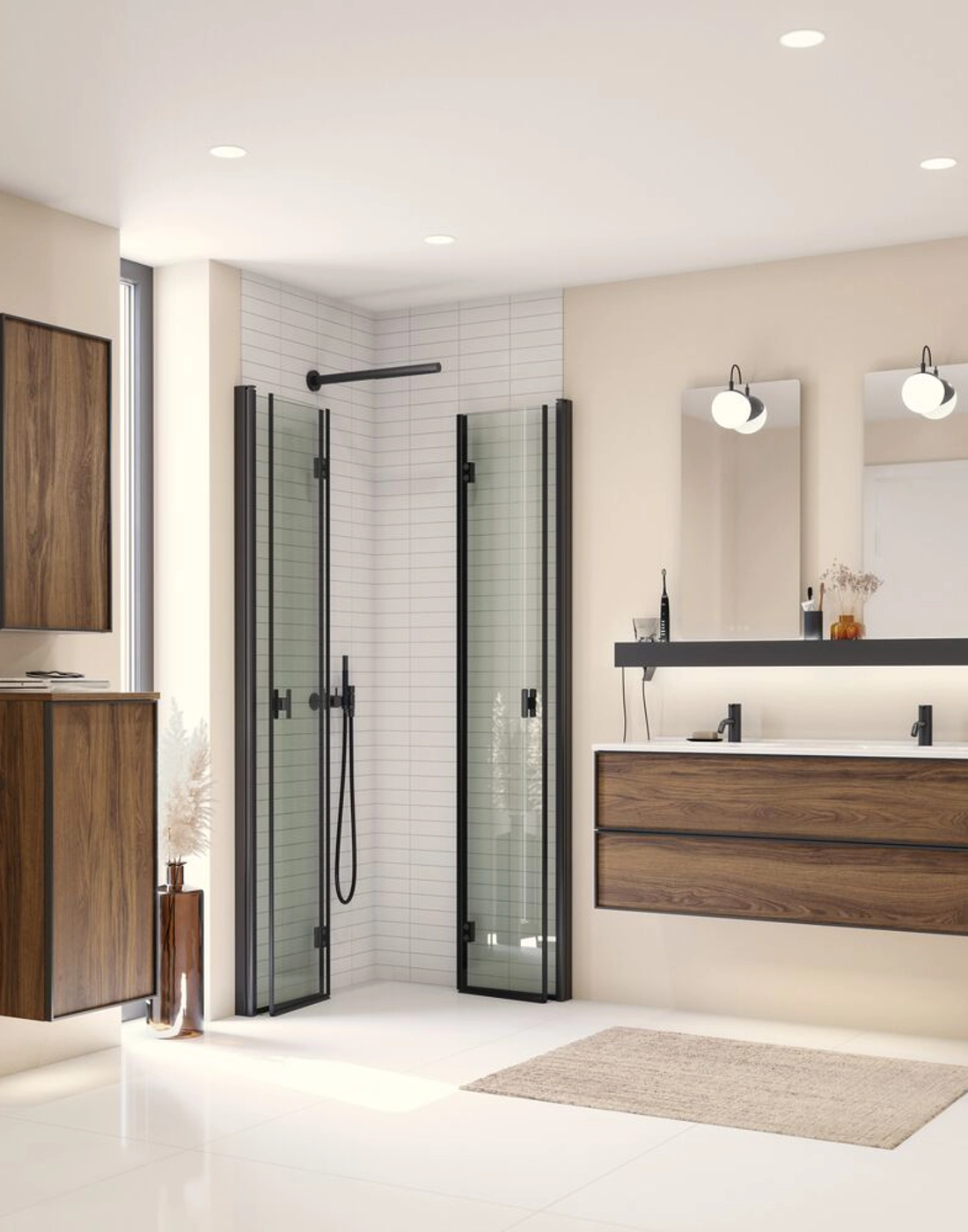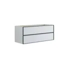 Upgraden Sie Ihr Badezimmer mit einem Waschtischunterschrank mit 2 Schubladen. Dieser stilvolle Schrank ist 48 cm hoch und 44 cm tief, ideal, um Ihre Badezimmerartikel zu organisieren. Der elegante schwarze Rahmen um die Schubladen verleiht einen modernen und schlichten Look, der zu jeder Einrichtung passt. Wählen Sie aus verschiedenen Farben, um diejenige zu finden, die am besten zu Ihrem Stil passt. Der Schrank bietet intelligente Aufbewahrung, sodass Sie ganz einfach Ordnung halten können. Der Waschtischunterschrank mit 2 Schubladen kombiniert Funktionalität mit Ästhetik und ist eine schöne Ergänzung für Ihr Badezimmer. Machen Sie Ihren Raum organisierter und einladender mit diesem fantastischen Waschtischunterschrank. OBS: Für Produkte mit wahlfreie Farbe fällt eine Aufpreis (BI1) an. Einmalige Berechnung, unabhängig von der Anzahl der Elemente. Überlegen Sie Ihre Badmöbel mit praktischem Zubehör auszustatten, an denen Sie täglich Freude haben werden. Wie z.B. LED-Beleuchtung in den Schubladen, Innenbeleuchtung in den Schränken, eine eingebaute Steckdose und LED-Beleuchtung unter dem Schrank inkl. Bewegungssensor und Lichtsteuerung die Ihren nächtlichen Besuch im Bad führt. Das Zubehör wählen Sie direkt mit Ihren Möbeln aus.