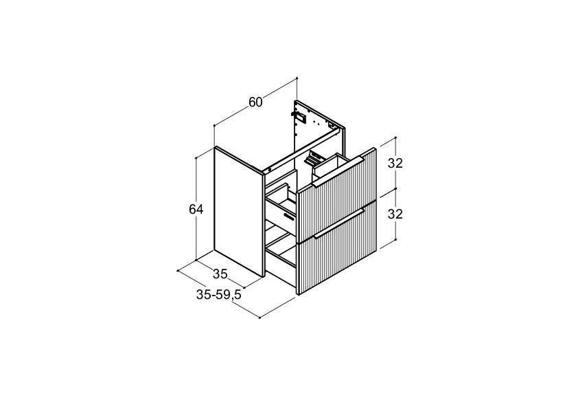 Ein vielseitiger Waschtischunterschrank in modernem Design mit zwei voll ausziehbaren Schubladen, die es leicht machen, Ordnung zu halten. Soft-Close und Qualitätsgleiter sorgen für ein leises und komfortables Benutzererlebnis bei jeder Benutzung. Das gestreifte, matte weiße Dekor verleiht dem Schrank einen leichten, strukturierten Look mit nordischem Charakter, während der mitgelieferte schwarze Griff ein scharfes optisches Detail darstellt. Eine perfekte Wahl für ein stilbewusstes Badezimmer.